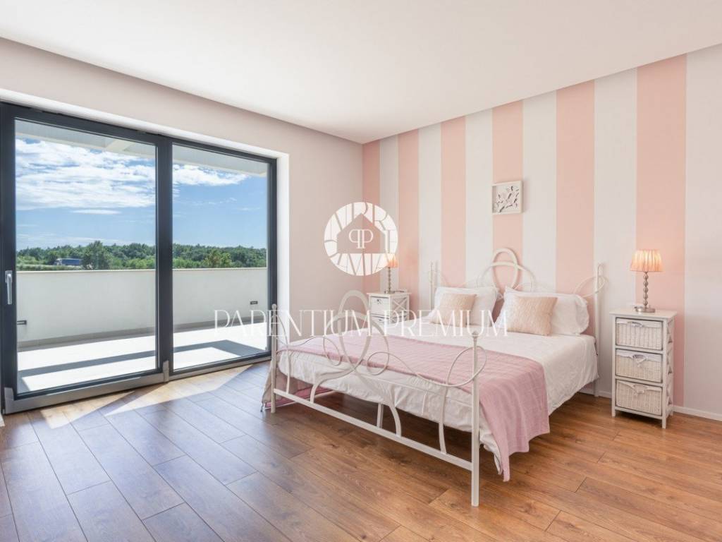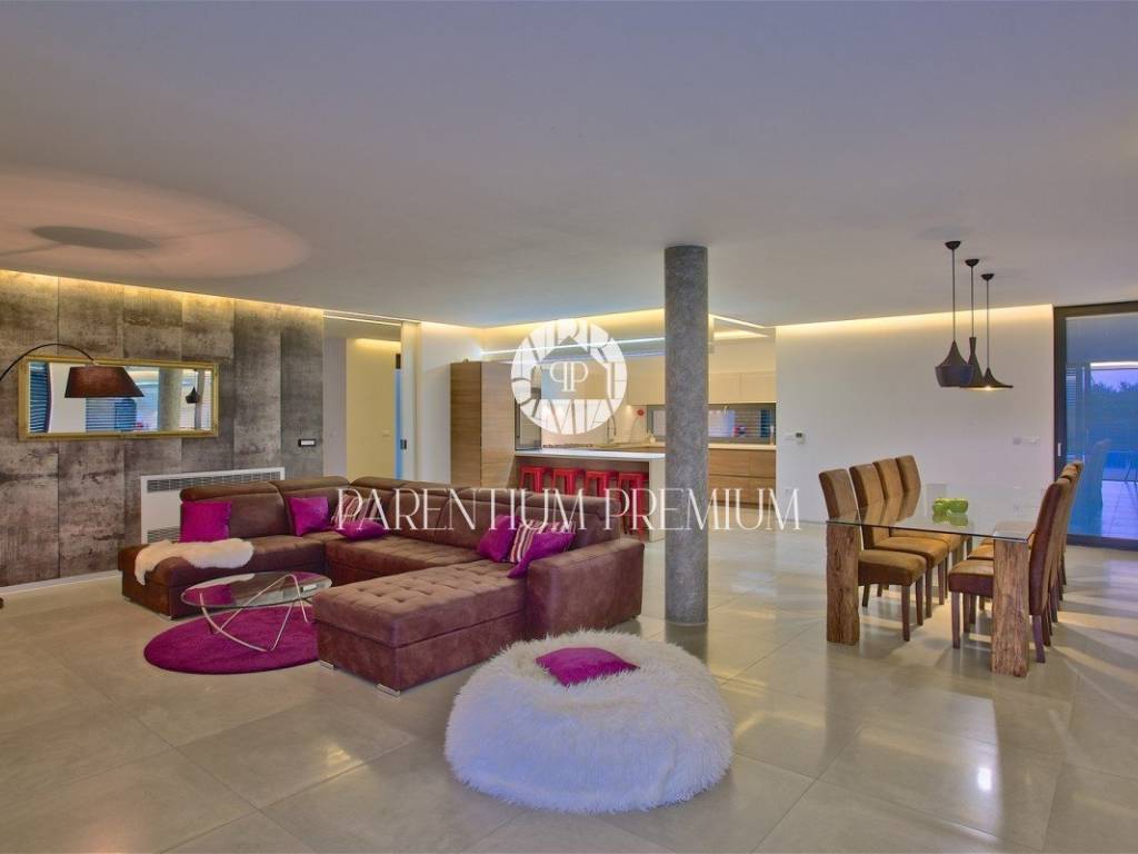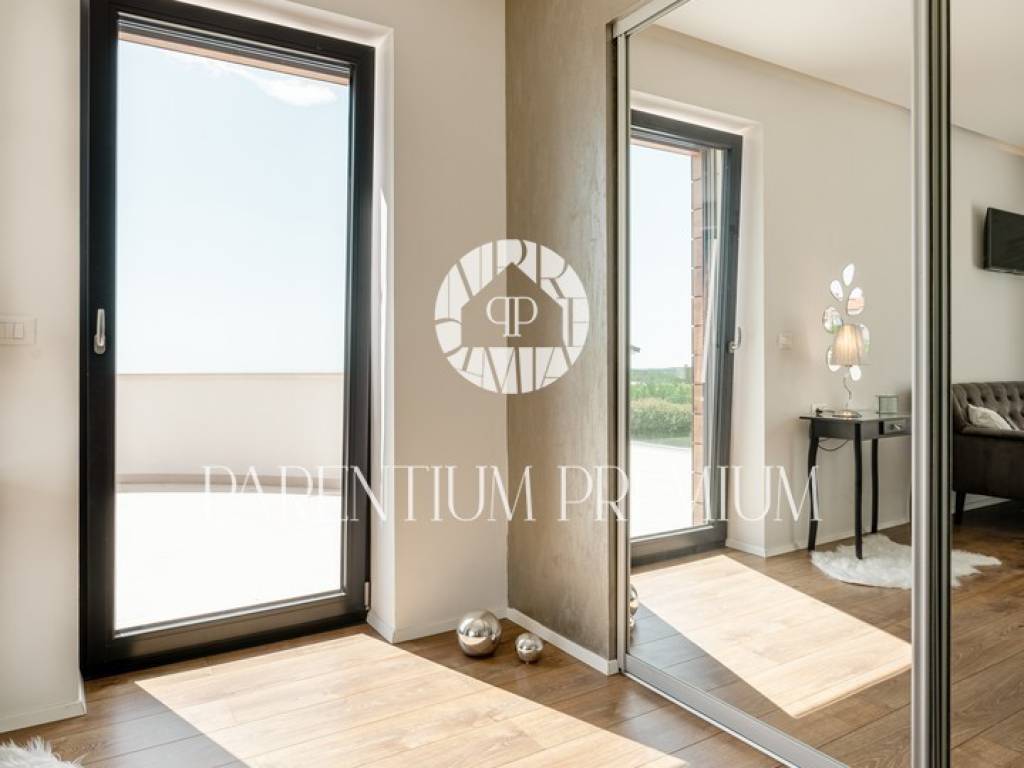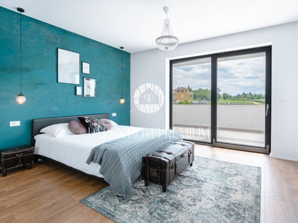 U okolici grada Poreča, u mjestu sa svim sadržajima kao što su trgovine, pošta, banka, škola, vrtić itd.., smjestila se ova luksuzna vila modernog dizajna stambene površine od 217m2 i zemljišta veličine 410m2.
