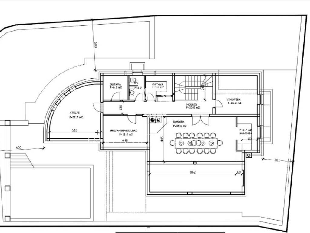 U suterenu vile je smještena kotlovnica, wc, 2 ostave, konoba u kojoj se nalazi stol za bilijar, kuhinja te vinoteka.