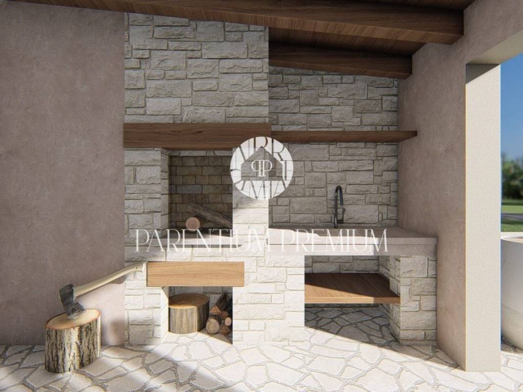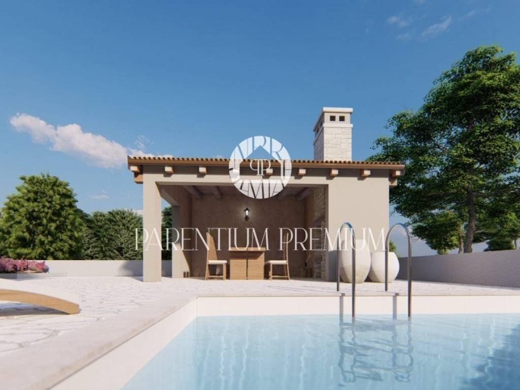 Iz dnevnog dijela izlazi se na terasu koja je natkrivena dok će dvorište biti uređeno mediteranskim stilom sa velikim bazenom i sunčalištem odličnim za ljetna uživanja uz ljetnu kuhinju koja upotpunjuje cijelu priču.