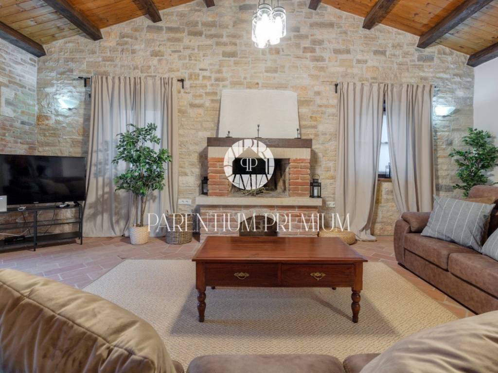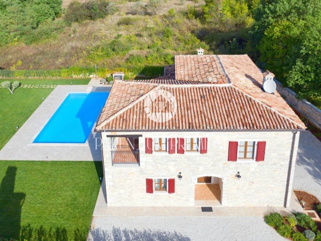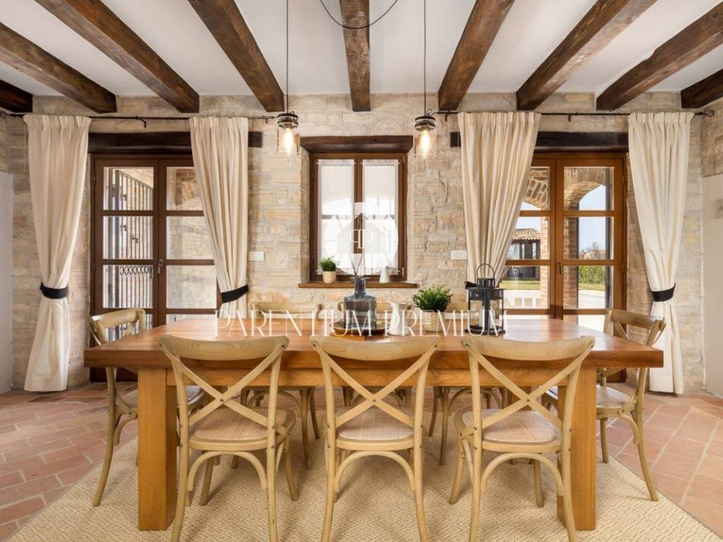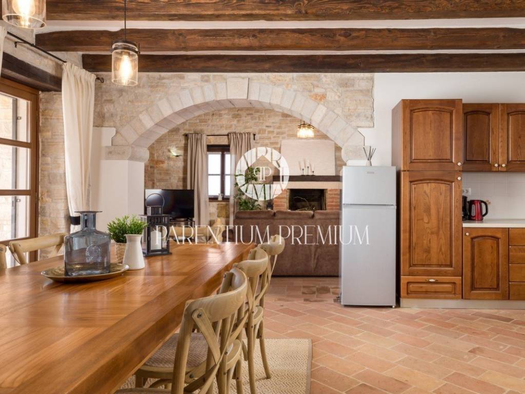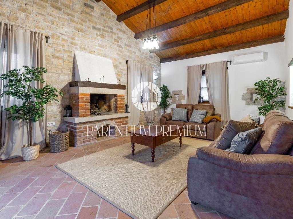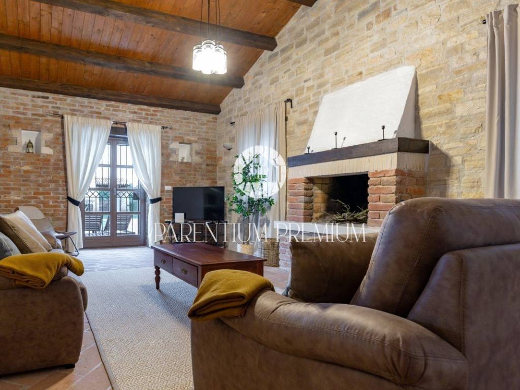 Ova specifična kamena vila nalazi se u malom istarskom mjestu okružena netaknutom prirodom, mirom i tišinom za kojom svi žudimo u užurbanim životima današnjice. Veličine je 291,90m2 stambene površine na zemljištu od 1772m2. U prizemlju se nalazi prelijepo uređen dnevni boravak u kojem romantičan kamin čini još bolji ugođaj u hladnijim periodima godine, kuhinja i blagovaona, spavaća soba sa vlastitom kupaonicom, ostava, hodnik, radna soba i gostinjski wc. Na katu su još dvije spavaće sobe sa vlastitom kupaonicom, garderobom i terasama s kojih se pruža pogled na prostrano zelenilo kojim je vila okružena. Na savršeno uređenoj prostranoj okućnici nalazi se bazen od 60m2 sa sunčalištem i natkrivena ljetna terasa sa roštiljem i sjedećim namještajem za uživanje u ručku ili zalasku sunca uz pokoju kapljicu istarskog vina. S druge strane terase nalazi se još jedna garnitura za sjedenje sa stolom, odmah do bazena gdje se možete osvježiti tijekom dana ili noći. Tu je i besprijekorno uređena livada na kojoj ima dovoljno mjesta za nesmetanu dječju igru na otvorenome. Iza kuće se nalaze vlastita parkirna mjesta. Obje etaže imaju klimu u svim prostorijama, a prizemlje je opremljeno i s podnim grijanjem. Okružena maslinama i prostranom zelenom okućnicom idealna je za život obiteljima s djecom a sigurnost i privatnost pruža činjenica da je vila u potpunosti ograđena. Osim što je savršena za život, adut joj je i uhodan posao u turističkom najmu pa je idealna prilika za investiciju i zaradu.