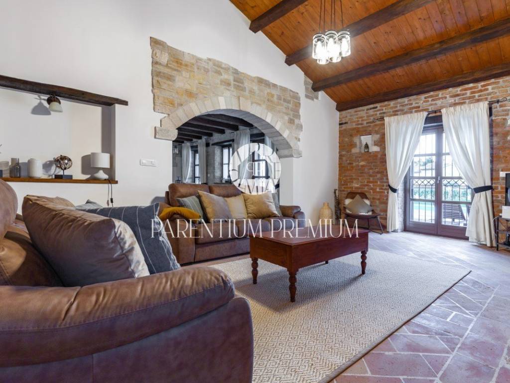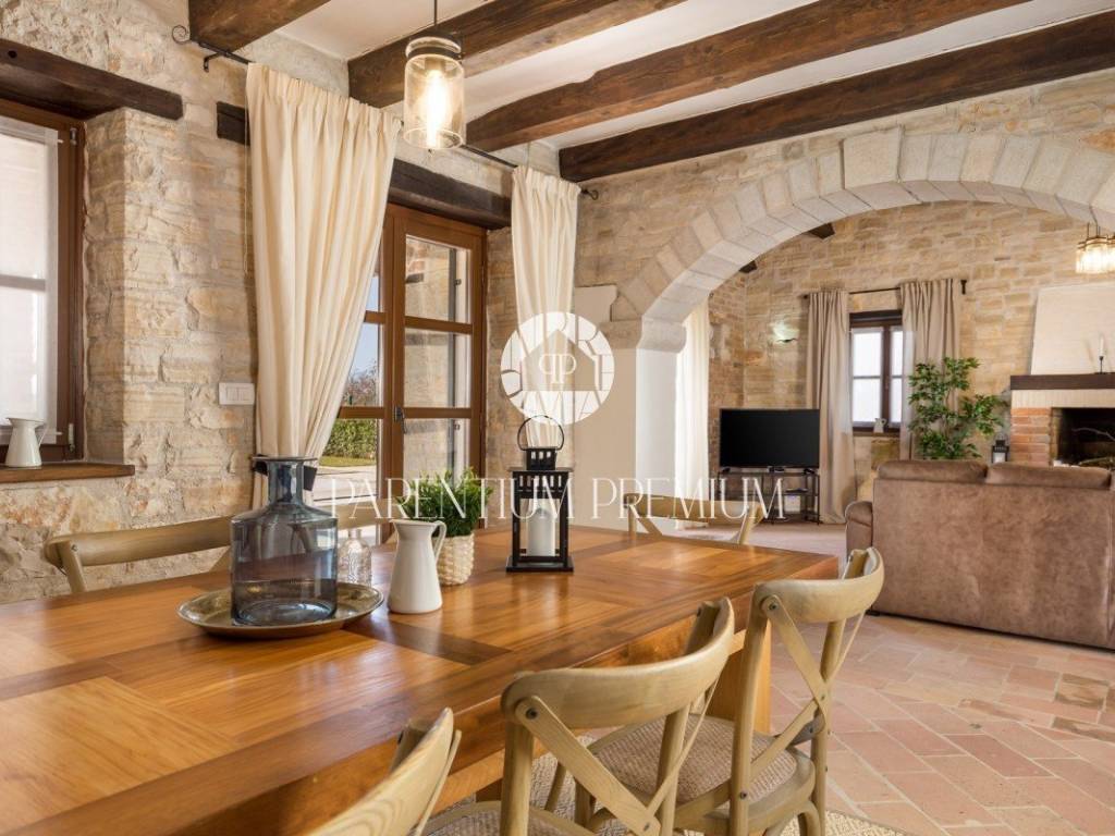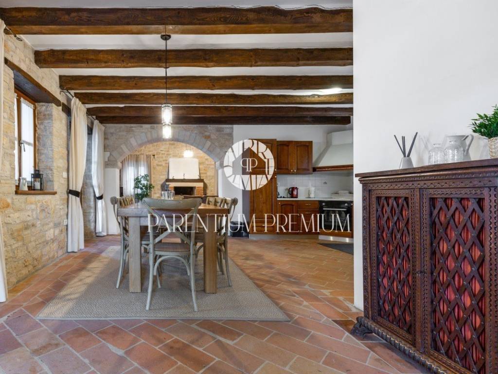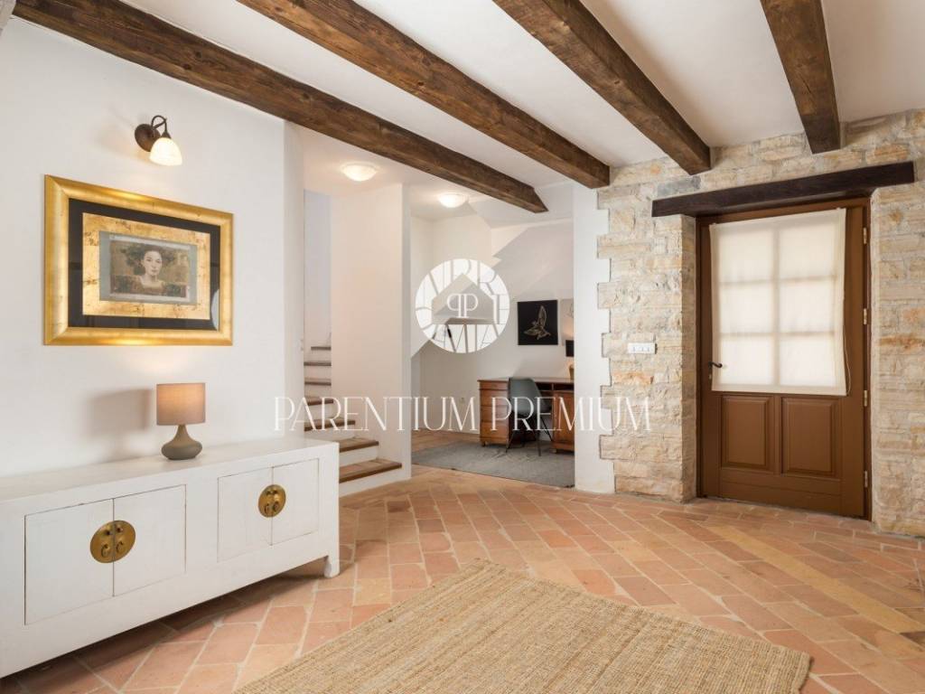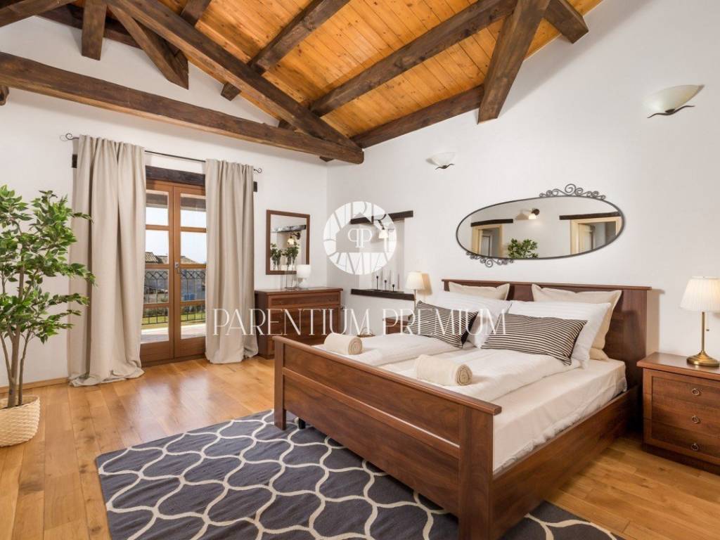 Ova specifična kamena vila nalazi se u malom istarskom mjestu okružena netaknutom prirodom, mirom i tišinom za kojom svi žudimo u užurbanim životima današnjice. Veličine je 291,90m2 stambene površine na zemljištu od 1772m2. U prizemlju se nalazi prelijepo uređen dnevni boravak u kojem romantičan kamin čini još bolji ugođaj u hladnijim periodima godine, kuhinja i blagovaona, spavaća soba sa vlastitom kupaonicom, ostava, hodnik, radna soba i gostinjski wc. Na katu su još dvije spavaće sobe sa vlastitom kupaonicom, garderobom i terasama s kojih se pruža pogled na prostrano zelenilo kojim je vila okružena. Na savršeno uređenoj prostranoj okućnici nalazi se bazen od 60m2 sa sunčalištem i natkrivena ljetna terasa sa roštiljem i sjedećim namještajem za uživanje u ručku ili zalasku sunca uz pokoju kapljicu istarskog vina. S druge strane terase nalazi se još jedna garnitura za sjedenje sa stolom, odmah do bazena gdje se možete osvježiti tijekom dana ili noći. Tu je i besprijekorno uređena livada na kojoj ima dovoljno mjesta za nesmetanu dječju igru na otvorenome. Iza kuće se nalaze vlastita parkirna mjesta. Obje etaže imaju klimu u svim prostorijama, a prizemlje je opremljeno i s podnim grijanjem. Okružena maslinama i prostranom zelenom okućnicom idealna je za život obiteljima s djecom a sigurnost i privatnost pruža činjenica da je vila u potpunosti ograđena. Osim što je savršena za život, adut joj je i uhodan posao u turističkom najmu pa je idealna prilika za investiciju i zaradu.