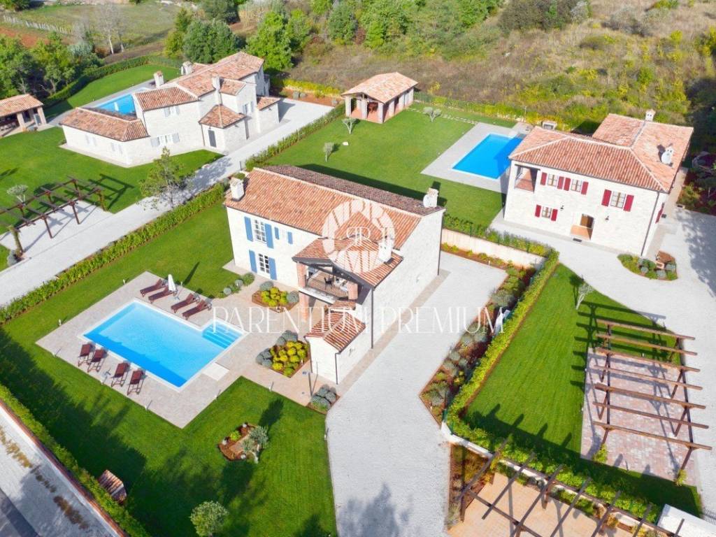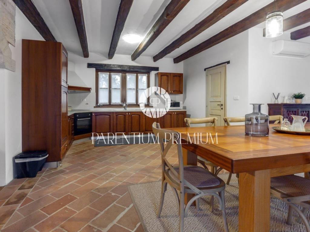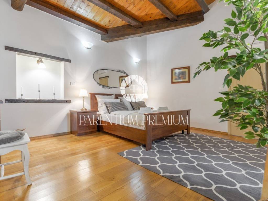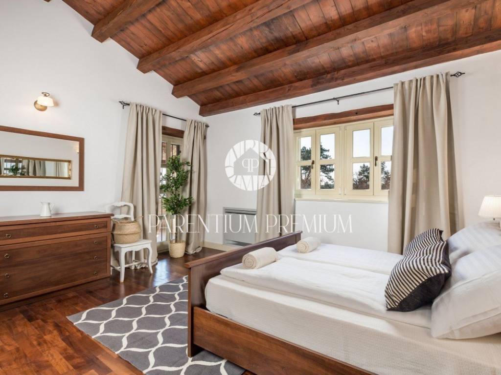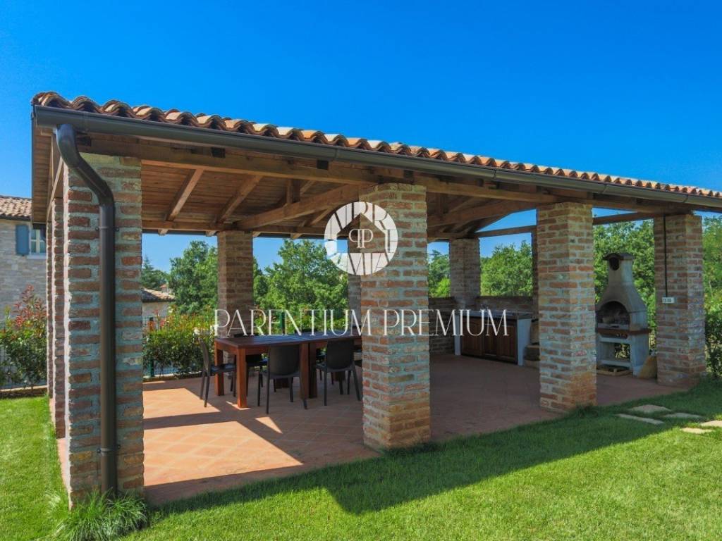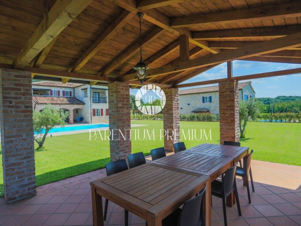 Ova specifična kamena vila nalazi se u malom istarskom mjestu okružena netaknutom prirodom, mirom i tišinom za kojom svi žudimo u užurbanim životima današnjice. Veličine je 291,90m2 stambene površine na zemljištu od 1772m2. U prizemlju se nalazi prelijepo uređen dnevni boravak u kojem romantičan kamin čini još bolji ugođaj u hladnijim periodima godine, kuhinja i blagovaona, spavaća soba sa vlastitom kupaonicom, ostava, hodnik, radna soba i gostinjski wc. Na katu su još dvije spavaće sobe sa vlastitom kupaonicom, garderobom i terasama s kojih se pruža pogled na prostrano zelenilo kojim je vila okružena. Na savršeno uređenoj prostranoj okućnici nalazi se bazen od 60m2 sa sunčalištem i natkrivena ljetna terasa sa roštiljem i sjedećim namještajem za uživanje u ručku ili zalasku sunca uz pokoju kapljicu istarskog vina. S druge strane terase nalazi se još jedna garnitura za sjedenje sa stolom, odmah do bazena gdje se možete osvježiti tijekom dana ili noći. Tu je i besprijekorno uređena livada na kojoj ima dovoljno mjesta za nesmetanu dječju igru na otvorenome. Iza kuće se nalaze vlastita parkirna mjesta. Obje etaže imaju klimu u svim prostorijama, a prizemlje je opremljeno i s podnim grijanjem. Okružena maslinama i prostranom zelenom okućnicom idealna je za život obiteljima s djecom a sigurnost i privatnost pruža činjenica da je vila u potpunosti ograđena. Osim što je savršena za život, adut joj je i uhodan posao u turističkom najmu pa je idealna prilika za investiciju i zaradu.