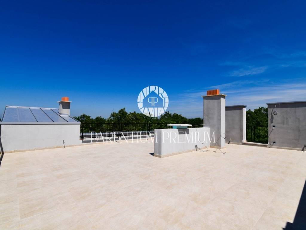 Nedaleko od grada Poreča u prodaji je stan u novogradnji na prvom katu sa krovnom terasom ukupne površine od 83,80m2.