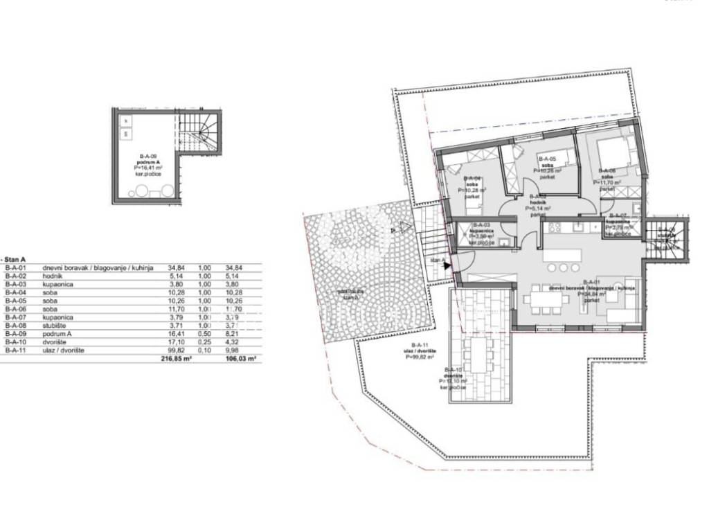 Ostava u podrumu površine od 16,41 m2 također pripada ovome stanu.