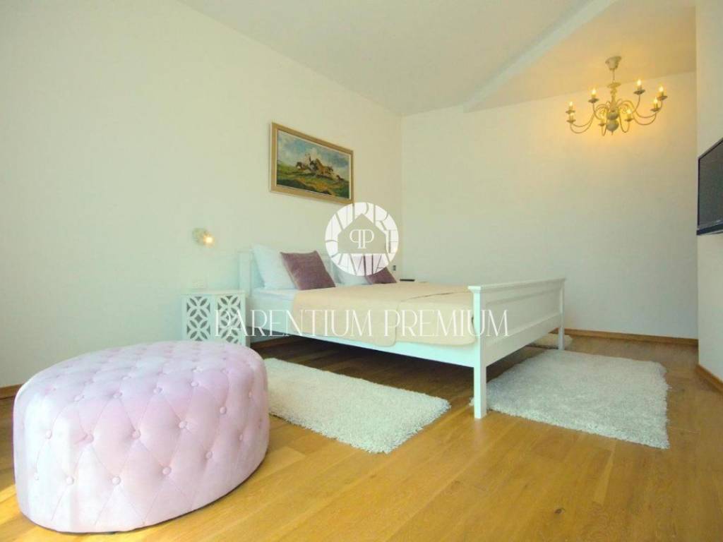 Kuća se prostire na dvije etaže gdje na prvoj etaži kuće nalazimo ulazni hodnik, prostranu spavaću sobu sa kupaonicom, lijepu veliku kuhinju sa blagovaonskim dijelom, prostrani dnevni boravak sa izlazom na dvorište gdje se nalazi bazen i sunčalište. Na gornjoj etaži kuće nalaze se tri prostrane spavaće sobe, svaka sa svojom kupaonicom i terasom sa koje se pruža predivan pogled na more i okolnu prirodu.