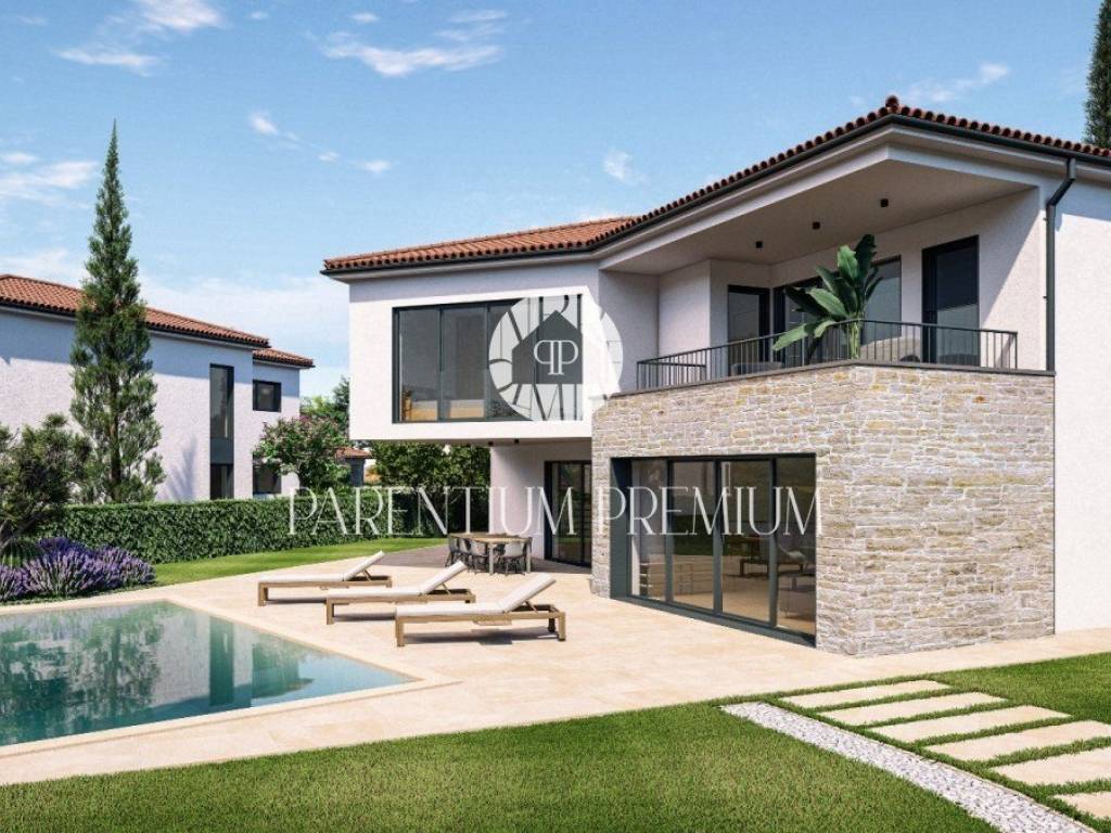 Na lijepoj i mirnoj lokaciji nedaleko od prekrasnih mjesta kao što su Limski kanal i Vrsar, smjestila se ova prostrana moderna vila istarskoga stila izuzetno kvalitetne gradnje.