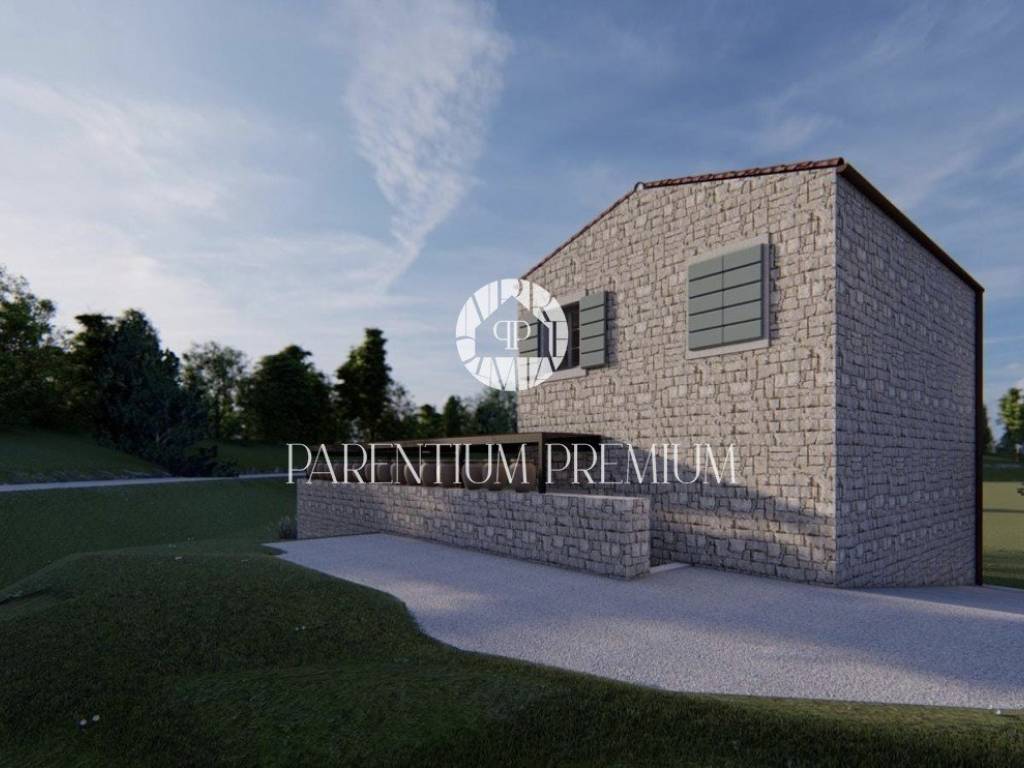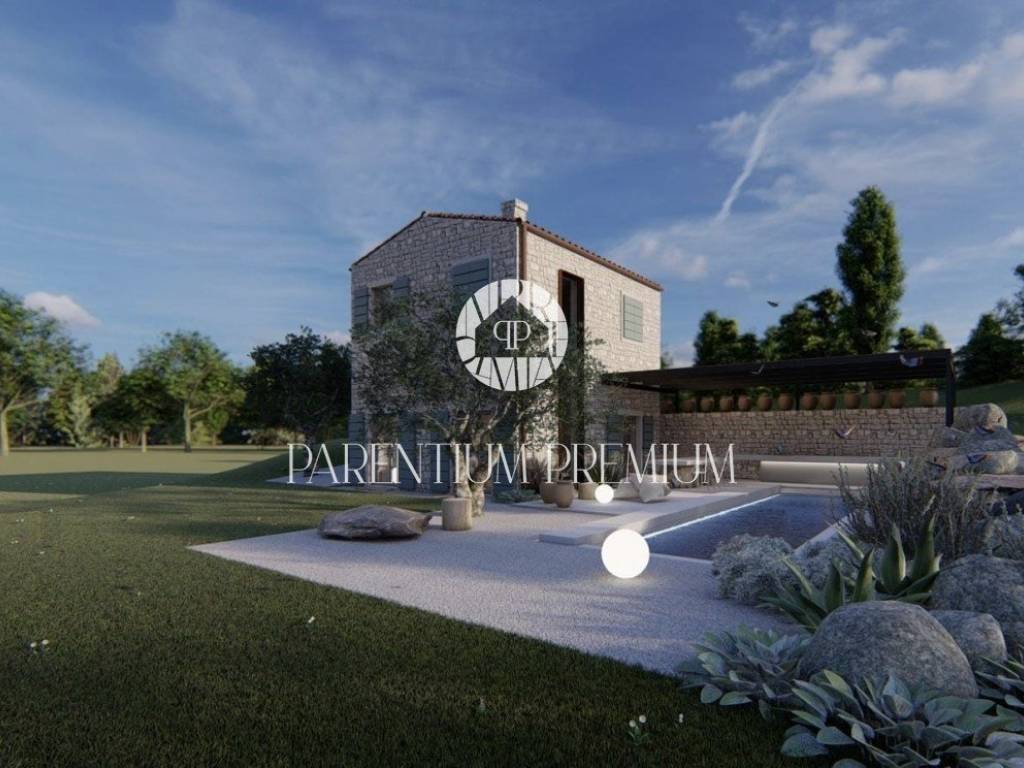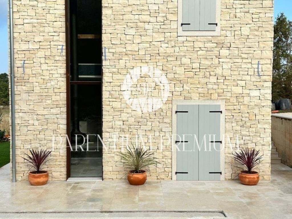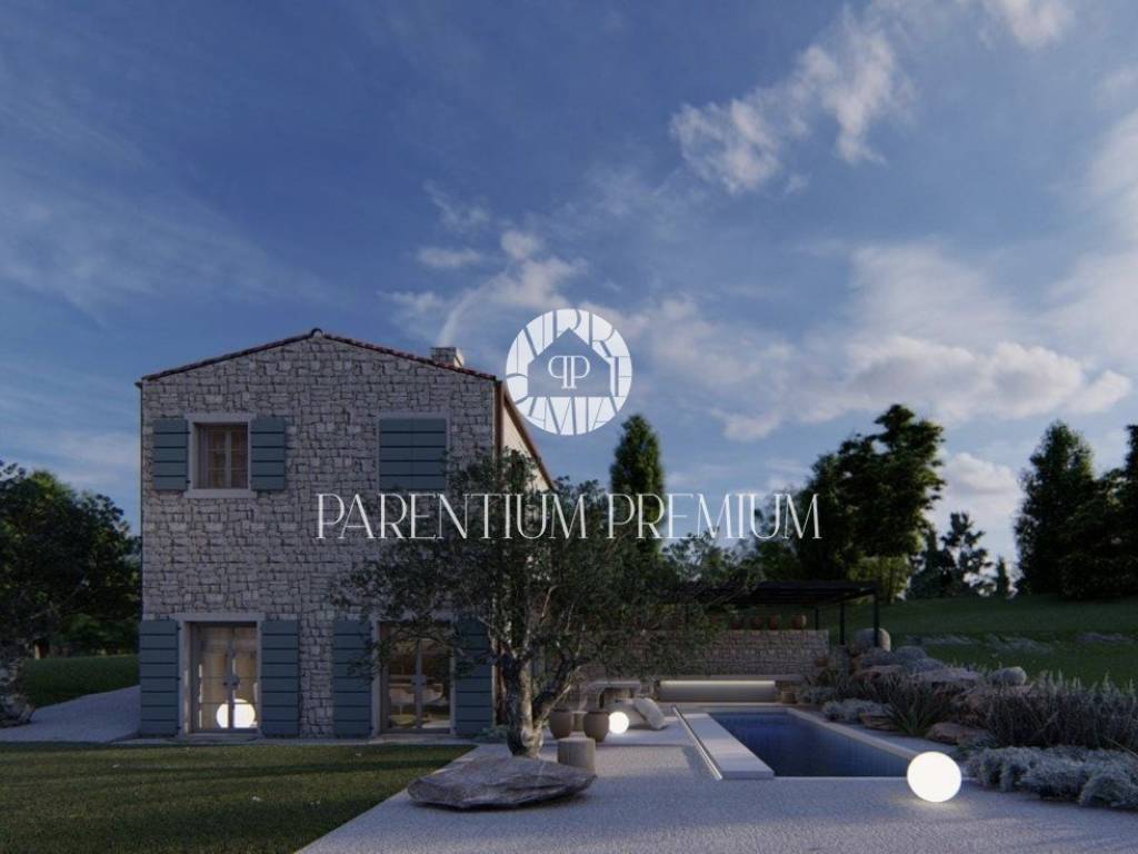 U okolici grada Buja nedaleko od prekrasnog istarskog mjesta Momjana smjestila se ova autohtona dizajnerska kamena vila sa bazenom. Ova kuća nalazi se na zemljištu impozantne veličine od ukupno 15.000m2 što budućim vlasnicima pruža neograničeni mir te idiličan odmor i uživanje u prekrasnoj prirodi.