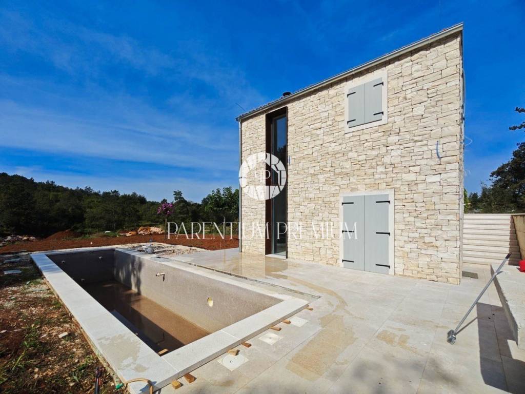 - termo fasada stiropor 10cm sa kamenom oblogom (suhozid) - autentična drvena vanjska stolarija (prozori i škure) - svi podovi uključujući i kupaonicu obloženi su autentičnim istarskim kamenom (Kanfanar) - sunčalište i dvorište oko kuće popločeno autentičnim istarskim kamenom (Kanfanar) - 3 sustava grijanja: podno grijanje, klima uređaj, na drva (kamin) - jedinstveni dizajnerski viseći kamin - staklena pregrada između kupaonice i spavaće sobe - vrhunska kupaonska oprema - visokokvalitetna bazenska tehnika - pažljivo uređena hortikultura - navodnjavanje trave (Hunter) - unutarnja i vanjska ambijentalna rasvjeta