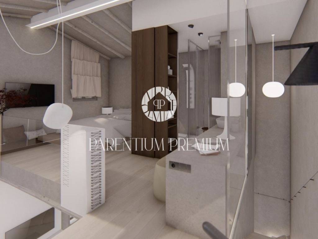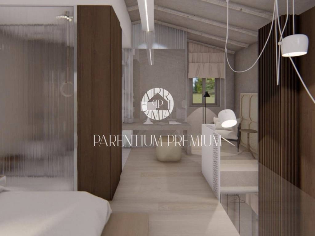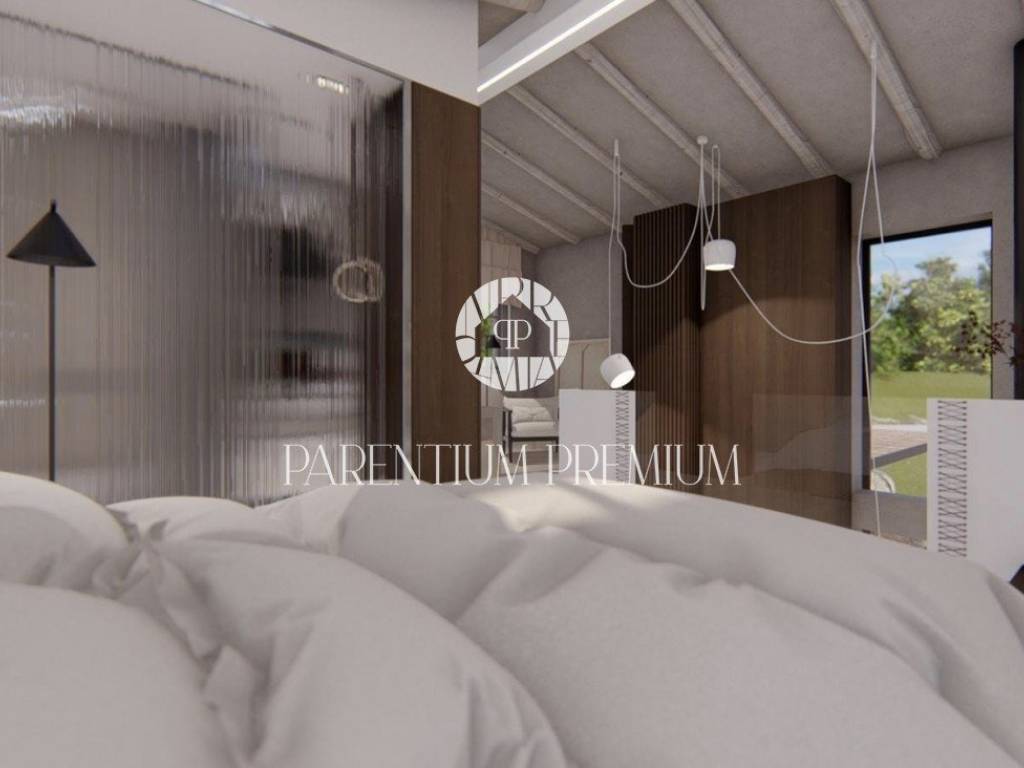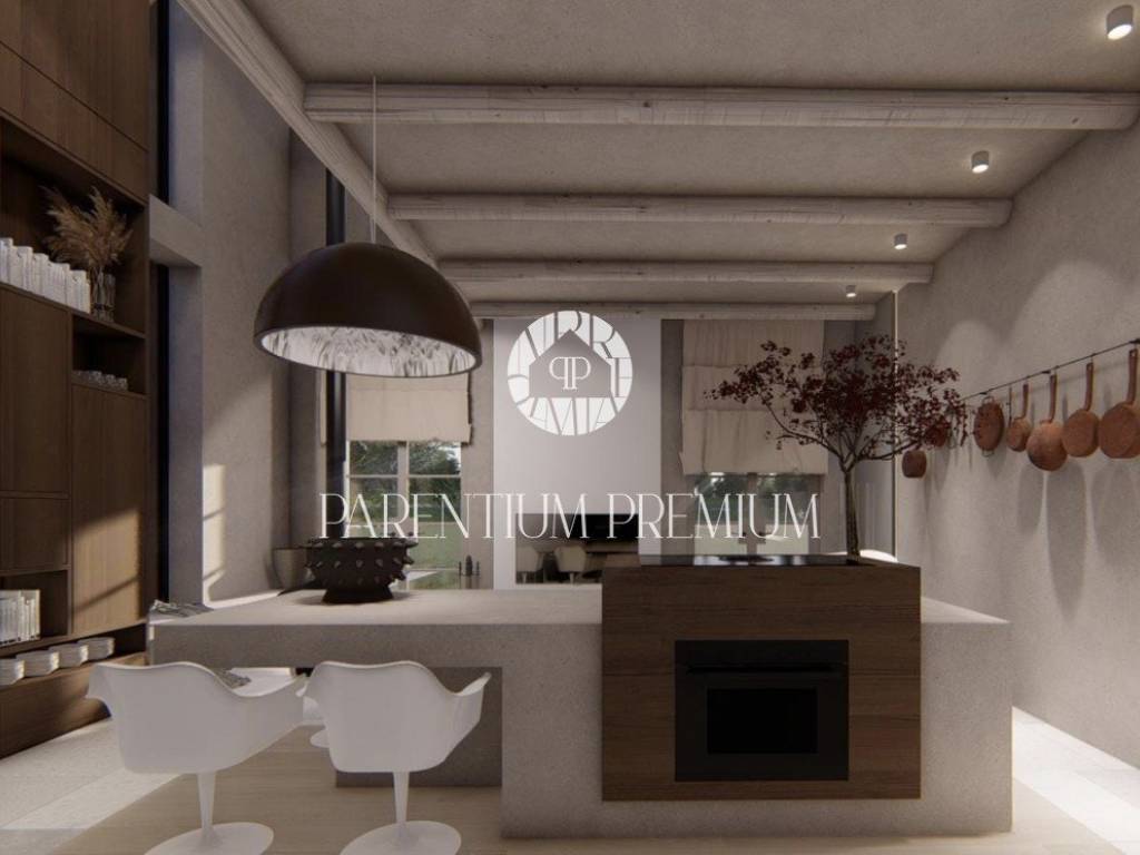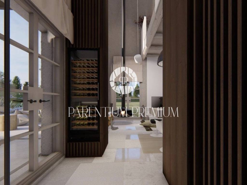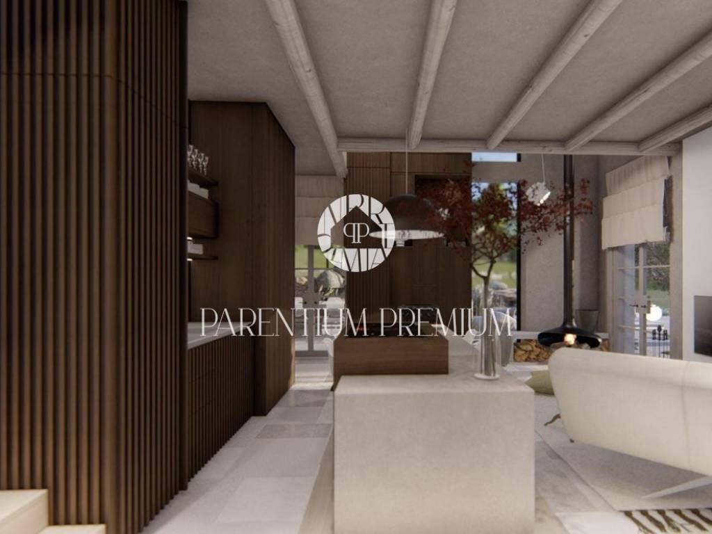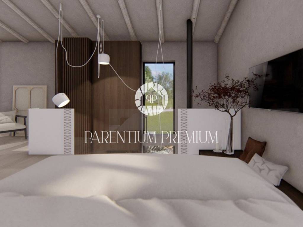 Vila se sastoji od 2 etaže koje su fantastično uređene te koncipirane modernom arhitekturom koja pristaje ovakvom objektu sa puno istarskih detalja. U prizemlju imamo open space koncept sa raznolikom strukturom pravilnih i nepravilnih linija koje obuhvaćaju dnevni boravak i kuhinju sa velikim svjetlosnim otvorom u vidu uzdužnog prozora te visećeg kamina kao uistinu upečatljivih detalja. Iz dnevnog dijela se izlazi na terasu i sunčalište oko bazena koja je djelomično natkrivena i povezana sa ljetnom kuhinjom. Na katu imamo otvorenu spavaću sobu dizajnerski uređenu sa vlastitom kupaonicom modernoga stila.