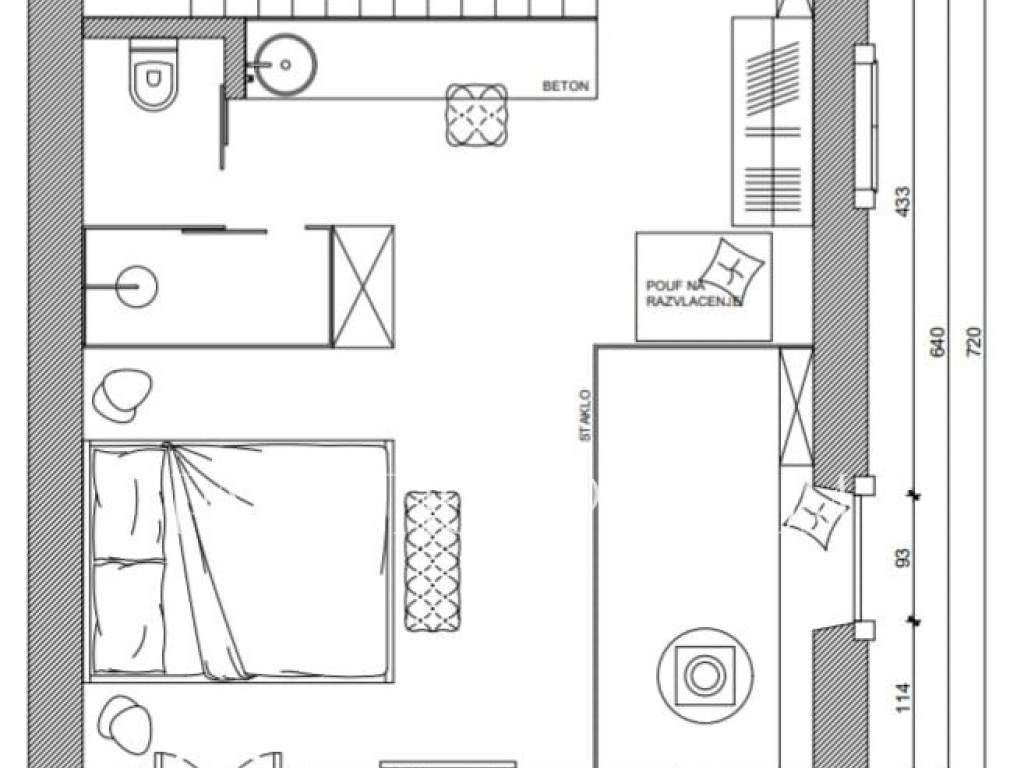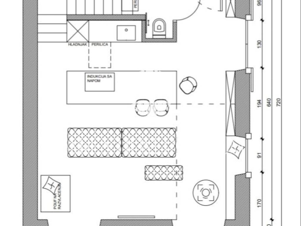 Kuća se prodaje kompletno opremljena i namještena najfinijim namještajem sa dizajnerskim pečatom.
