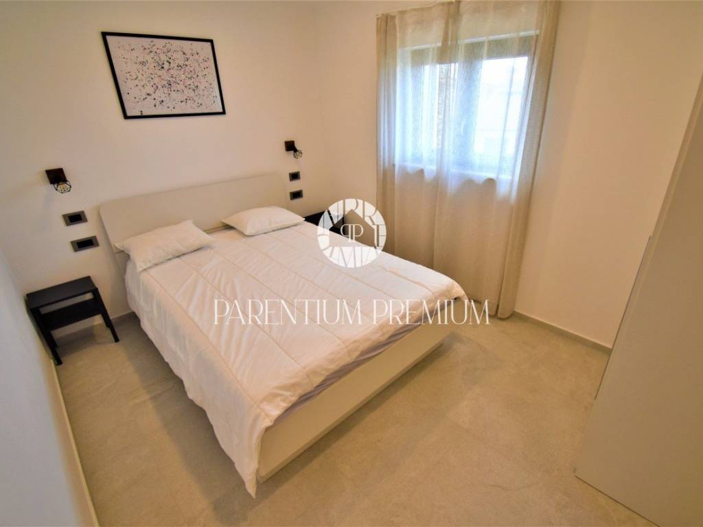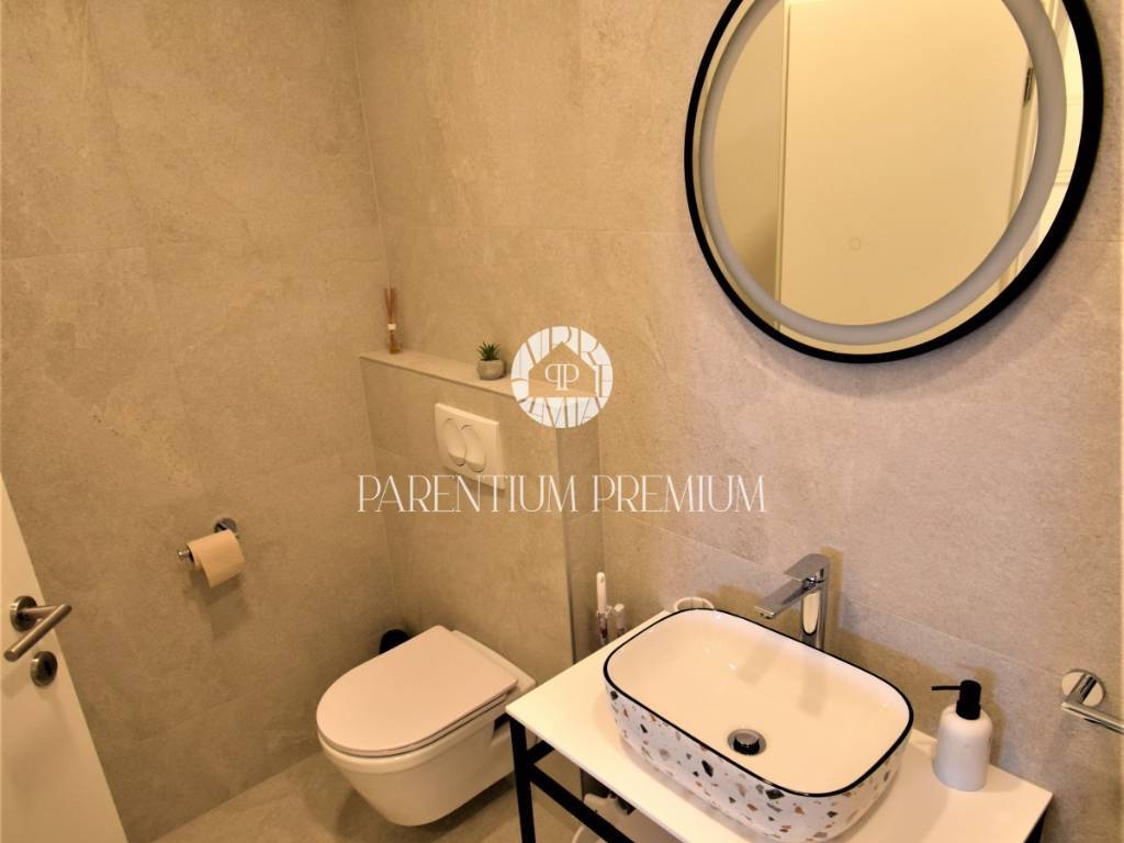 Elegancija i kvaliteta definiraju svaki detalj ovog stana. Talijanska keramika "Marca Corona," PVC stolarija i aluminijske škure, te uključen namještaj čine ovaj dom spremnim za useljenje.