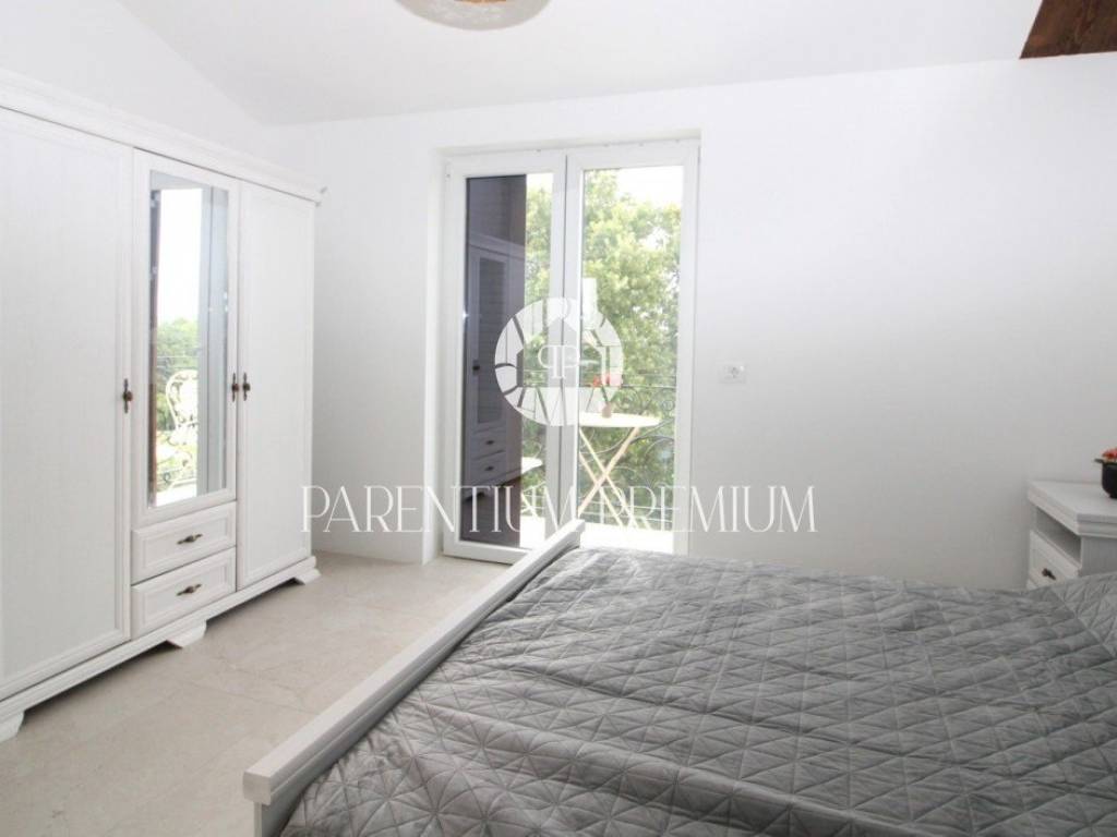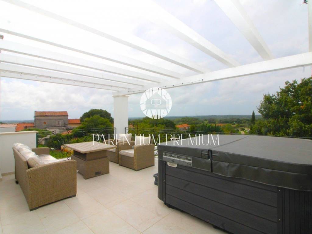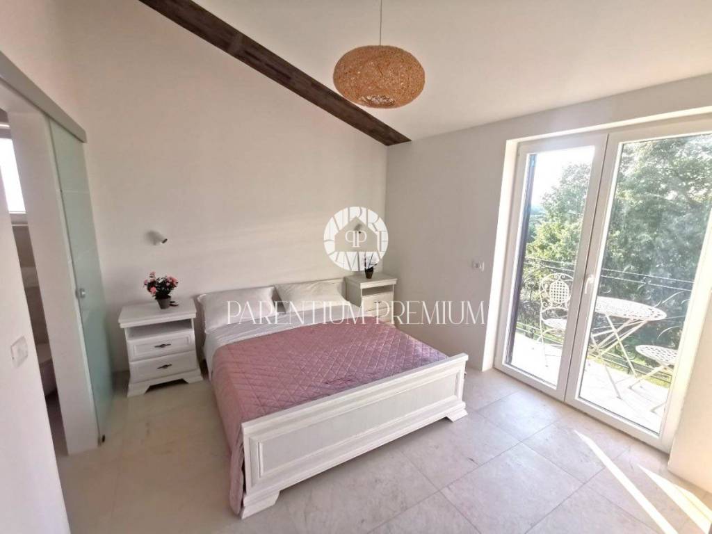 Na prvom katu, pronaći ćete dvije prostrane spavaće sobe, svaka sa svojom vlastitom kupaonicom i šarmantnim balkonima. Osim toga, na ovom katu se nalazi i prostrana terasa koja će vas oduševiti svojim jacuzzijem i manjim sunčalištem s nevjerojatnim panoramskim pogledom na prirodu i zelenilo okoline.