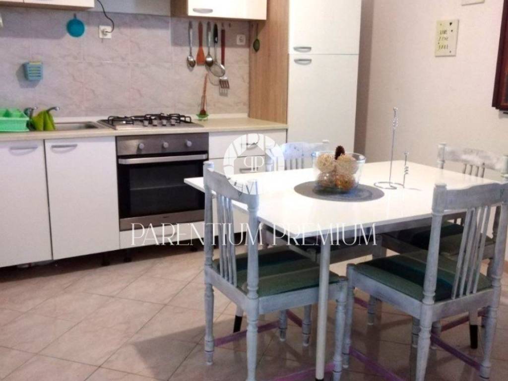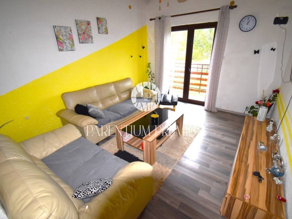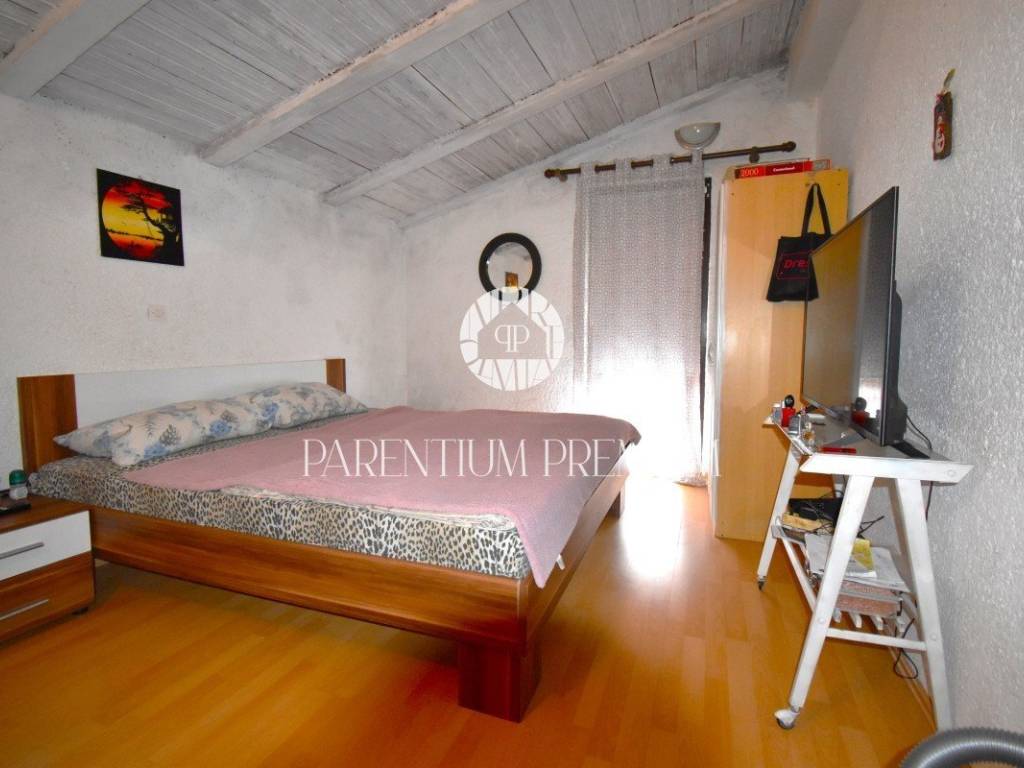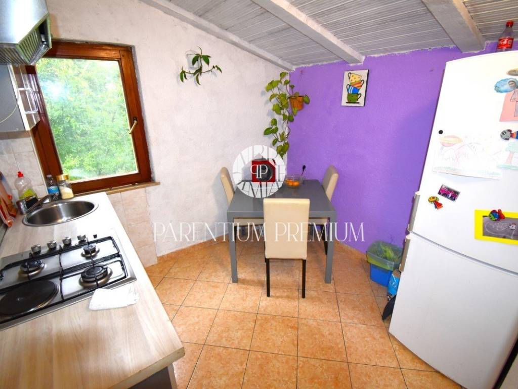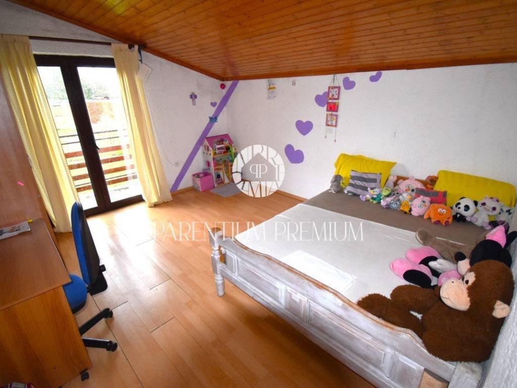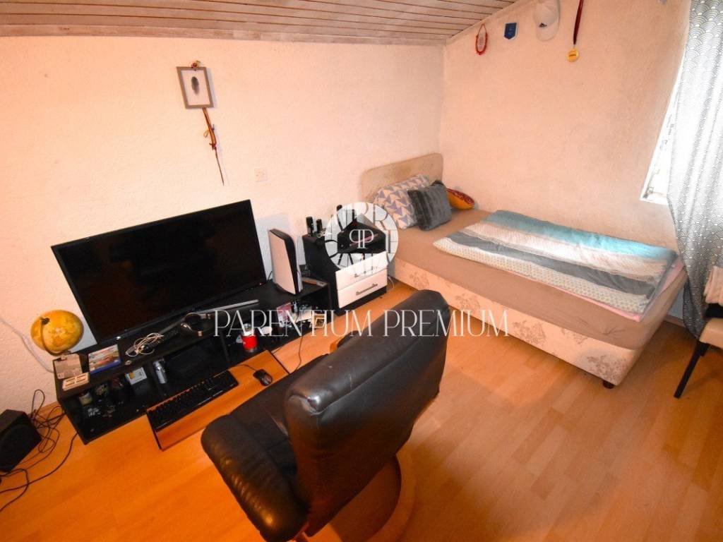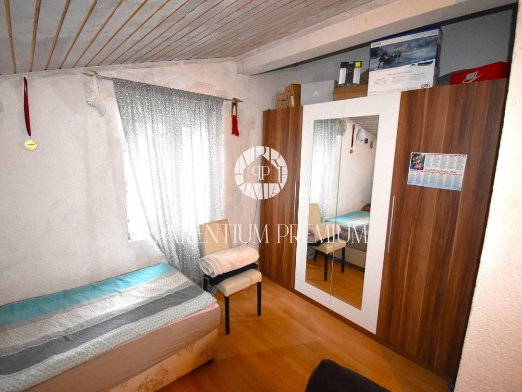 Na katu kuće smjestio se stan s prostranim dnevnim boravkom, kuhinjom, kupaonicom te čak tri prostrane spavaće sobe. Tu je i prostrani balkon koji nudi pogled na okolicu.