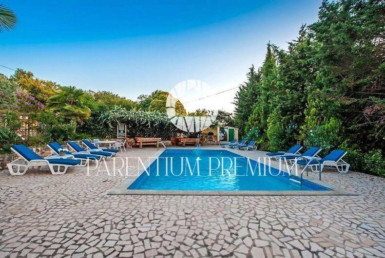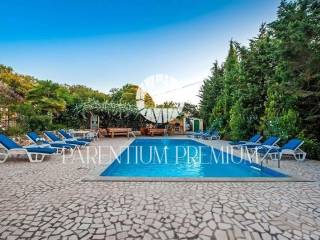 Vanjski prostor oduševljava popločanim vrtom oko bazena, natkrivenim parkingom, malom ljetnom kuhinjom i prostranim područjem za druženje. Ova nekretnina je idealna za ulaganje u turizam zbog već uhodanog posla i obiljem prostora za opuštanje. Ne propustite ovu priliku za profitabilnu investiciju u turističkom sektoru.