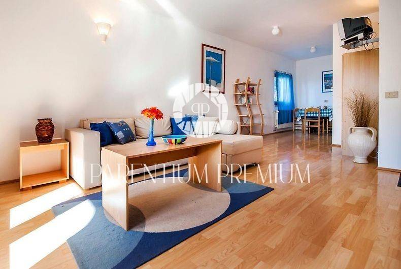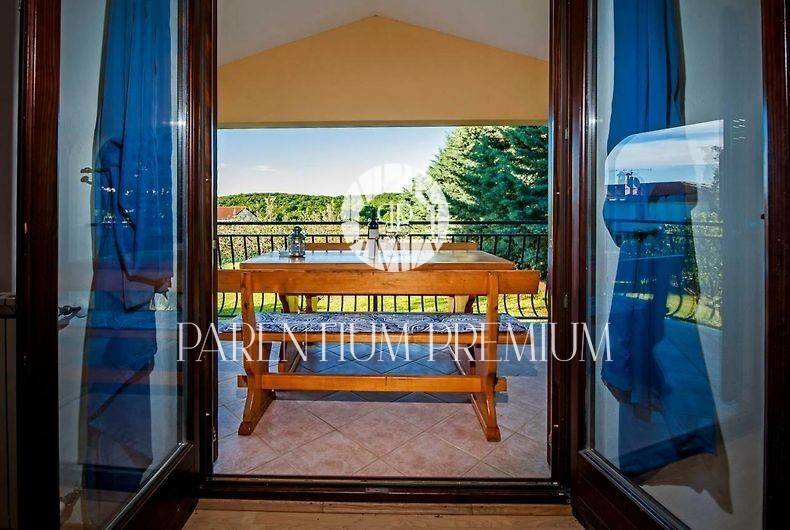 Prvi apartman: Apartman s 2 prostrane spavaće sobe, prozračnim dnevnim boravkom, potpuno opremljenom kuhinjom i blagovaonicom te modernom kupaonicom. Velika spavaća soba vodi na šarmantnu terasu s opčinjavajućim pogledom na okolno zelenilo.