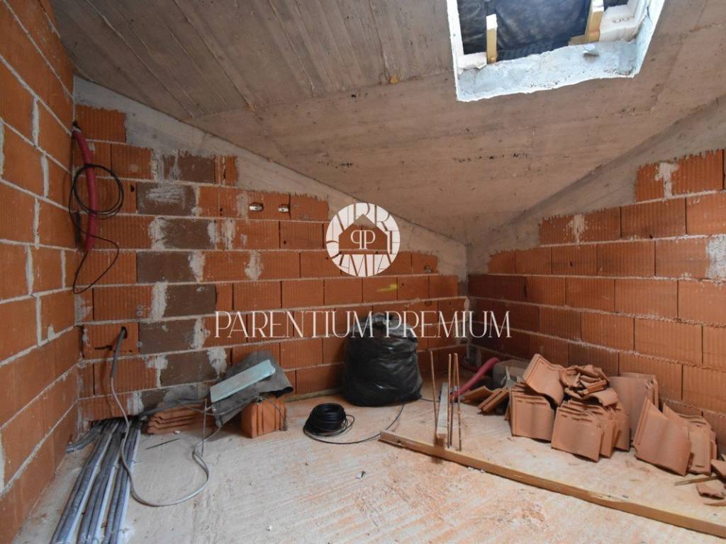 Stan se nalazi se na 1. katu. Sastoji se od ulaznog hodnika, ostave, gostinjskog wc-a s vešerajem, open space kuhinje, blagovaonice i dnevnog boravka, unutarnjim stepenicama se penje na drugi kat gdje se nalaze 3 spavaće sobe i kupaonica s tušem. Podno grijanje je na struju i klima uređaji. Stanu pripadaju 2 parkirna mjesta i vanjska ostava.