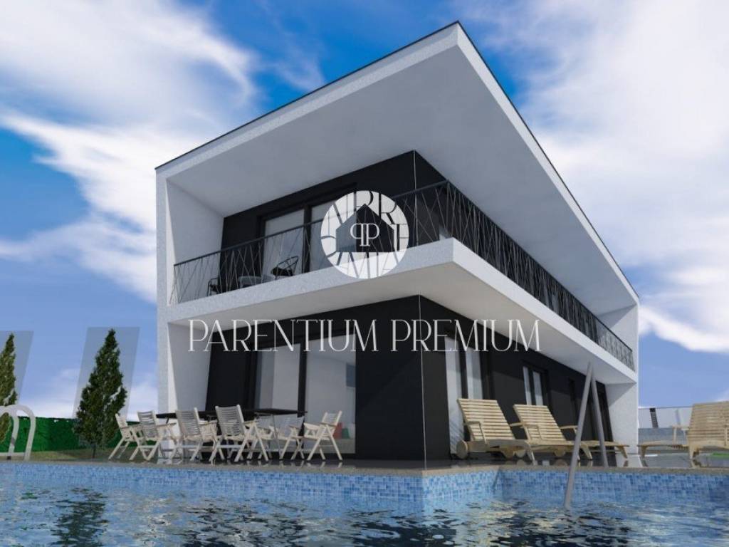U malom mjestu svega 10ak minuta vožnje do centra Poreča i njegovih plaža, gradi se ova impresivna vila od 240m2 površine na zemljištu od 1080m2. Nedaleko od vile nalaze se svi potrebni sadržaji od trgovine, vrtića, kafića i sl.