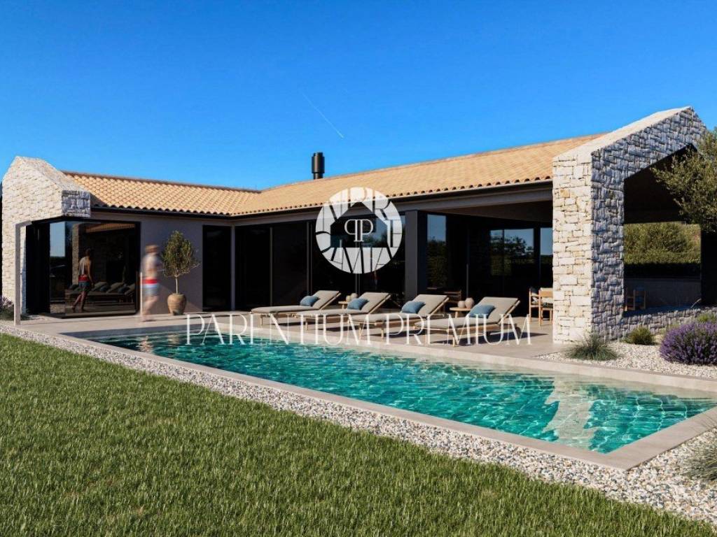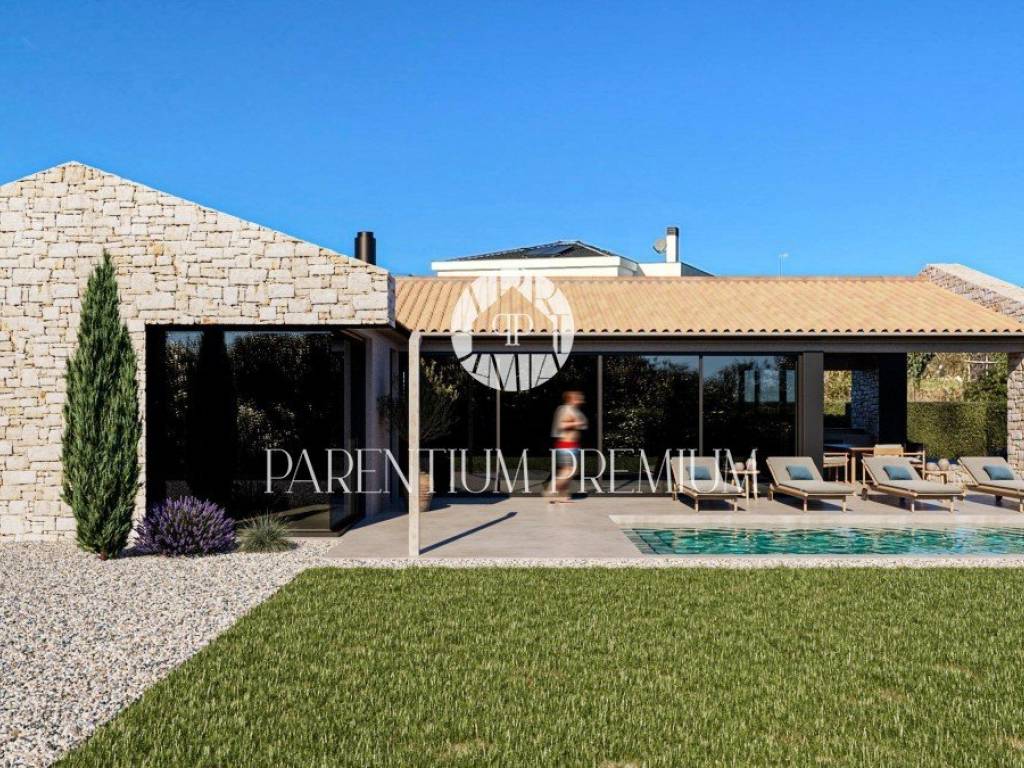 Na vrlo atraktivnoj lokaciji, počela je izgradnja ove prekrasne dizajnerske ville kojoj je planiran dovršetak lipanj 2025 g. Kuća je opremljena podnim grijanjem svim sobama putem dizalice topline, a u svim sobama nalazi se klima uređaj.