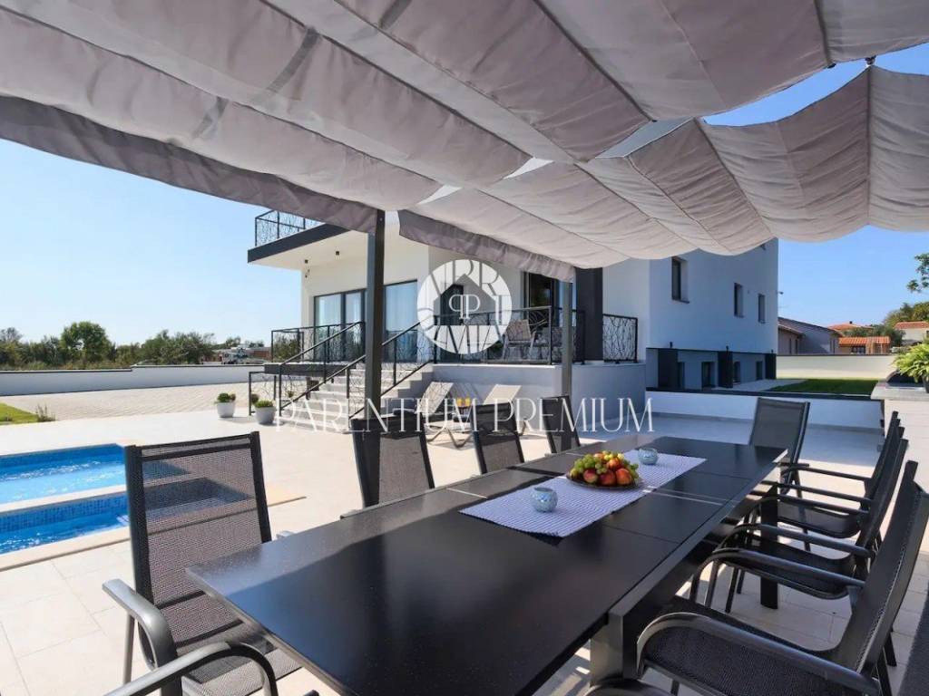 U Štinjanu, očaravajućem mjestu, smjestila se ova izuzetna kuća koja predstavlja spoj visoke kvalitete, modernog dizajna i samoodrživosti. S ukupnom bruto površinom od 570 m i prostranom okućnicom od 1758 m, ova nekretnina prostire se na tri etaže.