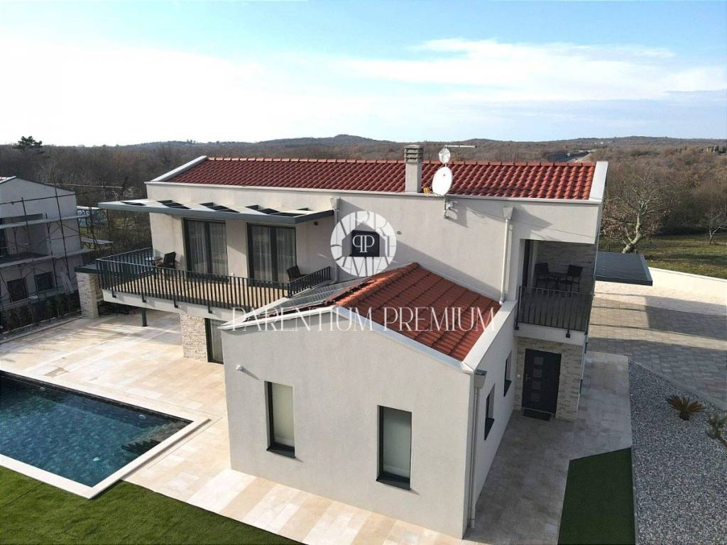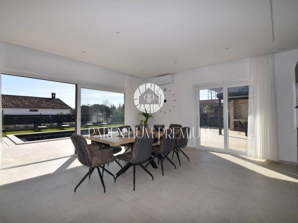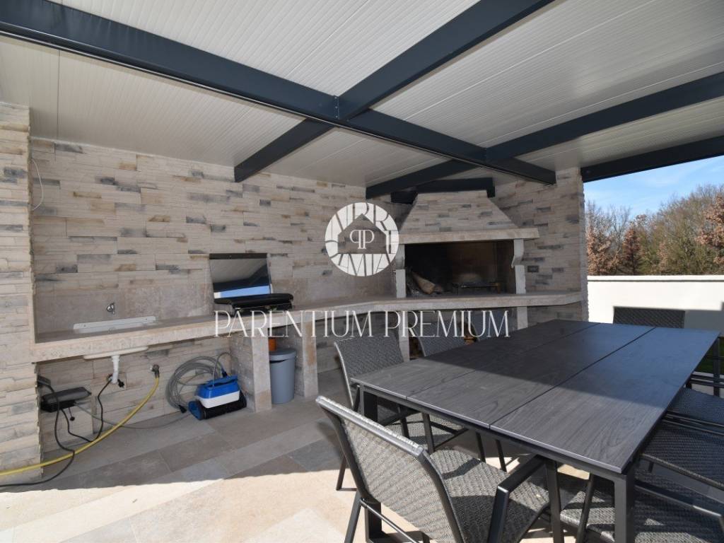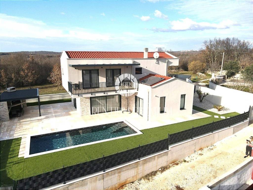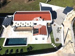 Na 10 km od prvog mjesta sa sadržajima, u mirnom selu smjestila se ova prekrasna nova villa s bazenom. Kuća površine 180 m2 smjestila se na zemljištu površine 792 m2 i sastoji se od prizemlja i kata. Prizemlje kuće čini ulazni hodnik, prostrani dnevni prostor sa kuhinjom i blagavaonicom, jedna spavaća soba sa kupaonicom, wc, kotlovnica te praonica rublja. Na katu kuće nalazimo još tri spavaće sobe, svaka sa vlastitom kupaonicom te dvije natkrivene terase. Na ograđenom i ljepo uređenom dvorištu nalazi se ljetna kuhinja s kaminom, bazen i sunčalište. Kuća ima na raspolaganju i vanjsku kućicu kao ostavu, natkriveni parking te punjač za električne automobile. Ova je nekretnina odlična prilika za riješavanje stambenog pitanja ili za iznajmljivanje tokom ljetnih mjeseci.