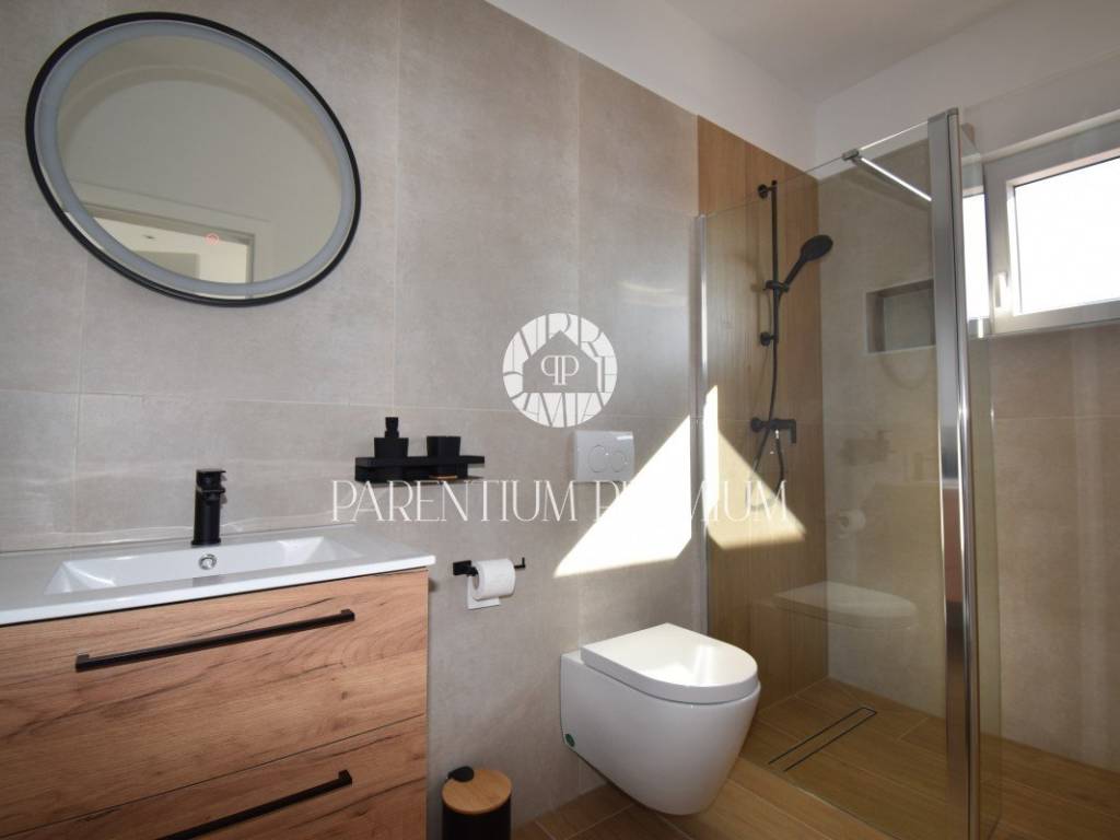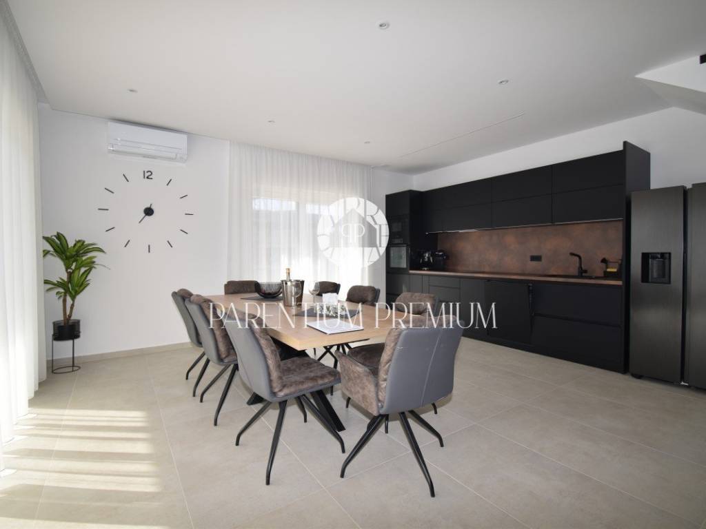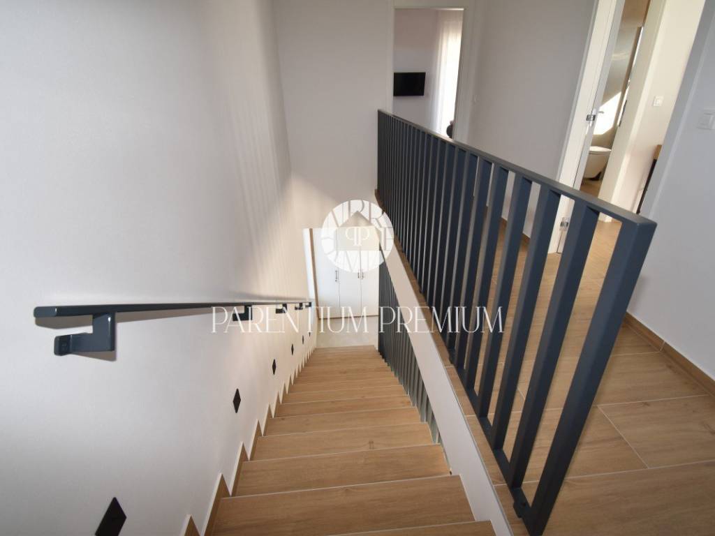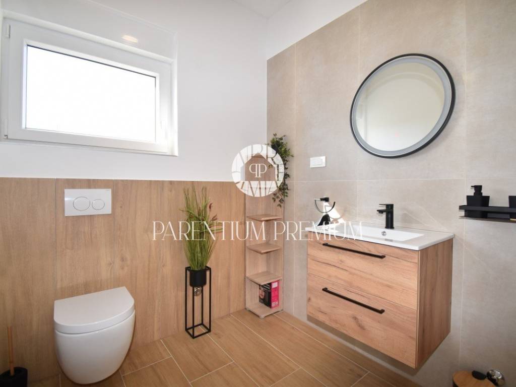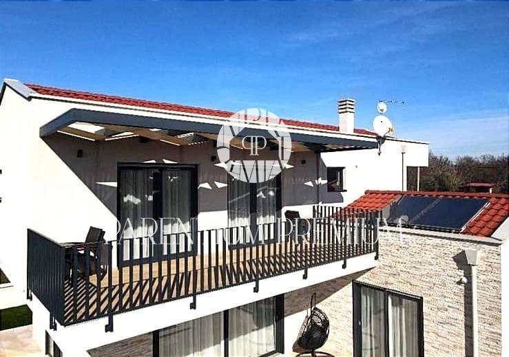 Na 10 km od prvog mjesta sa sadržajima, u mirnom selu smjestila se ova prekrasna nova villa s bazenom. Kuća površine 180 m2 smjestila se na zemljištu površine 792 m2 i sastoji se od prizemlja i kata. Prizemlje kuće čini ulazni hodnik, prostrani dnevni prostor sa kuhinjom i blagavaonicom, jedna spavaća soba sa kupaonicom, wc, kotlovnica te praonica rublja. Na katu kuće nalazimo još tri spavaće sobe, svaka sa vlastitom kupaonicom te dvije natkrivene terase. Na ograđenom i ljepo uređenom dvorištu nalazi se ljetna kuhinja s kaminom, bazen i sunčalište. Kuća ima na raspolaganju i vanjsku kućicu kao ostavu, natkriveni parking te punjač za električne automobile. Ova je nekretnina odlična prilika za riješavanje stambenog pitanja ili za iznajmljivanje tokom ljetnih mjeseci.