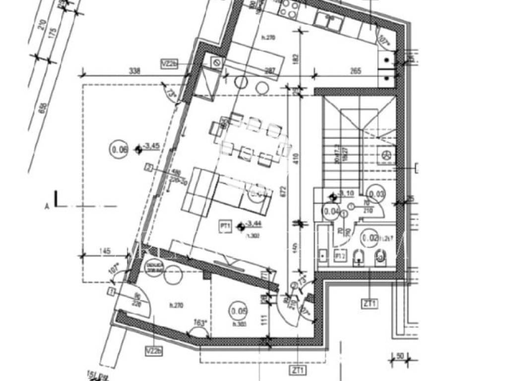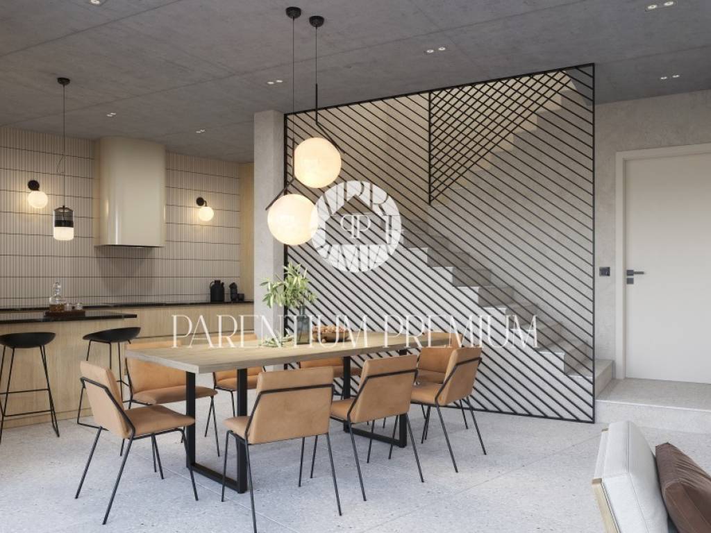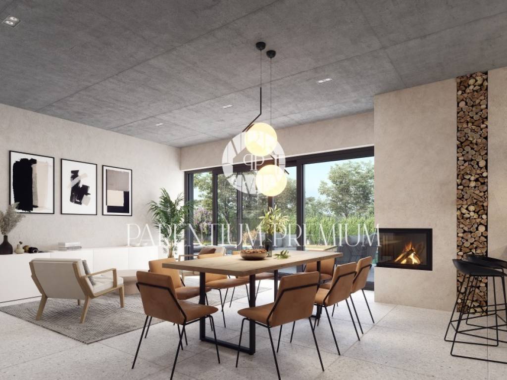 U prizemlju će se nalaziti prostrani open space dnevni boravak sa kaminom na drva te velikom kliznom stijenom koja će voditi na terasu gdje se smjestila ljetna kuhinja i grijani bazen veličine od 56m2. Na ovoj etaži ćemo imati još kuhinju, blagovaonu, spremište i manji WC.