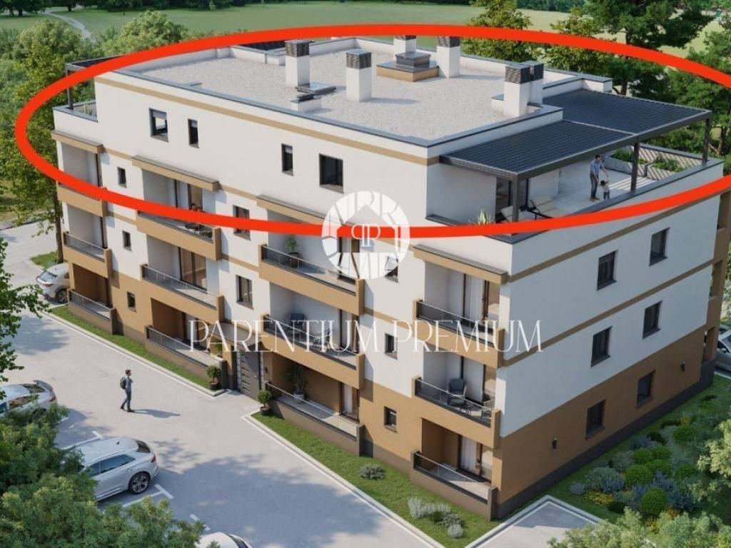 U okolici grada Poreča u naselju koje pruža sve sadržaje ugodnog življenja smjestila se ova moderna zgrada sa liftom te ovaj vrhunski penthouse koji se proteže cijelom etažom ukupne površine od 191m2.