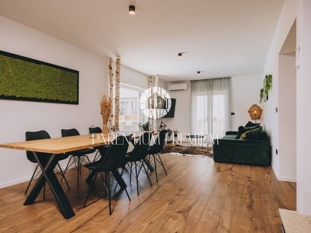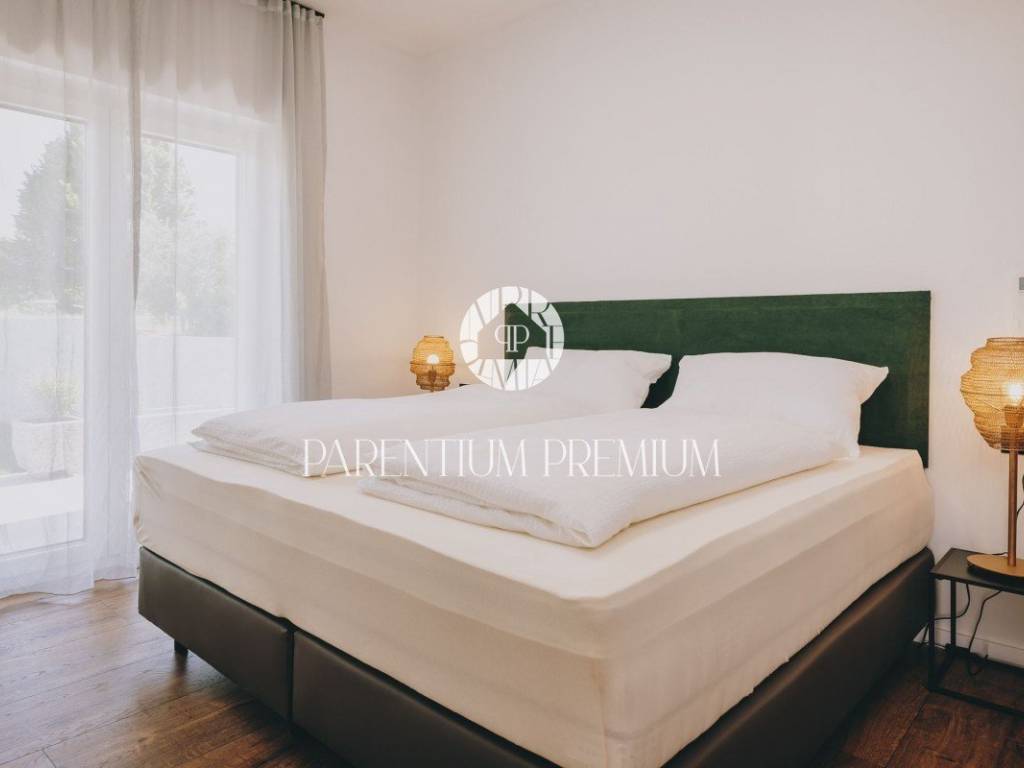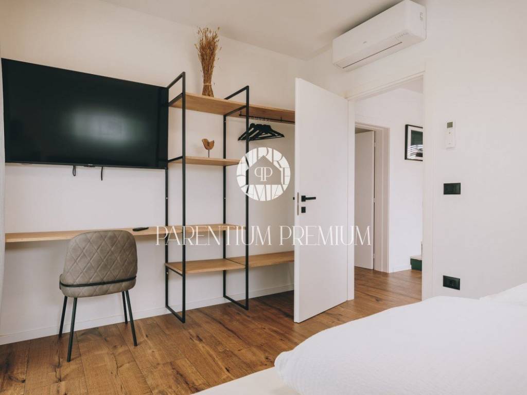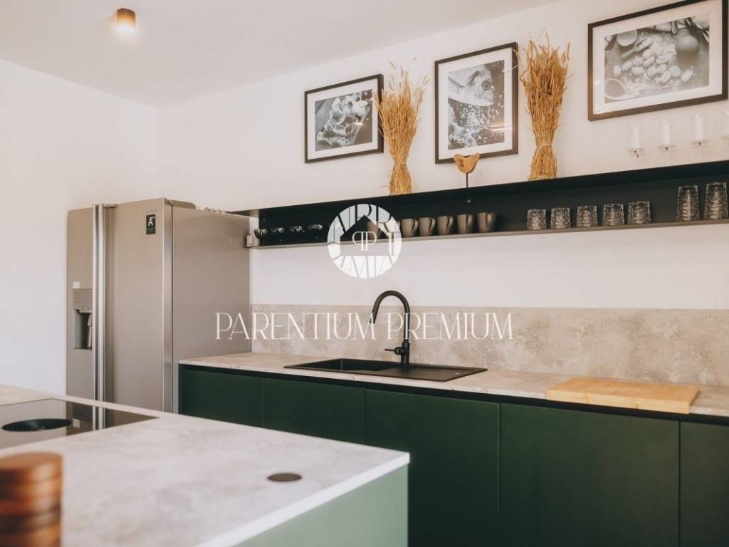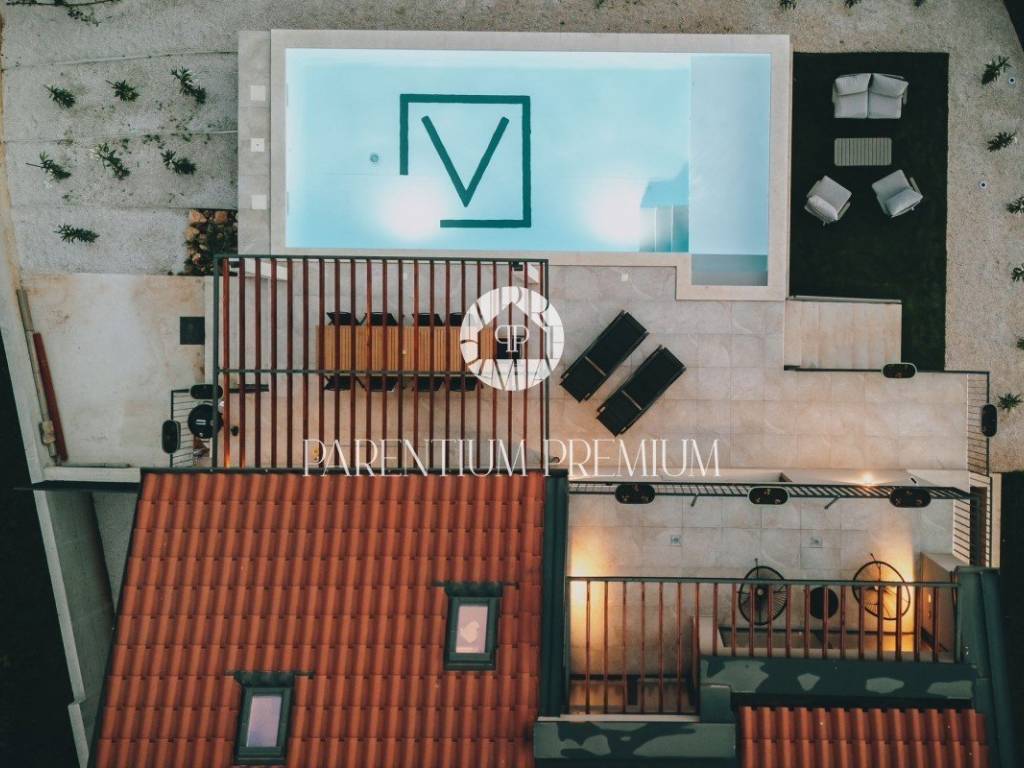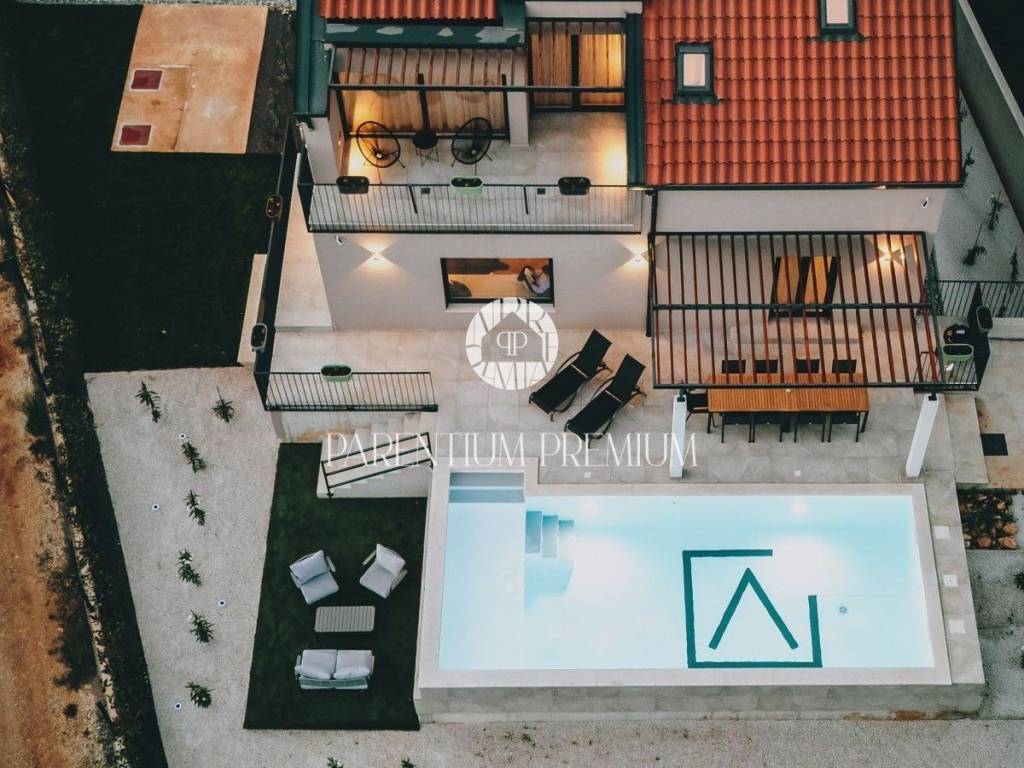 U prizemlju se nalazi ulazni hodnik, kupaonica, 2 spavaće sobe od kojih jedna ima vlastitu kupaonu, dnevni boravak sa blagovaonom i kuhinjom po open space konceptu sa pogledom na bazen i izlazom na vanjsku terasu s pergolom, gdje se nalazi sunčalište i bazen od 9mx3,85m.