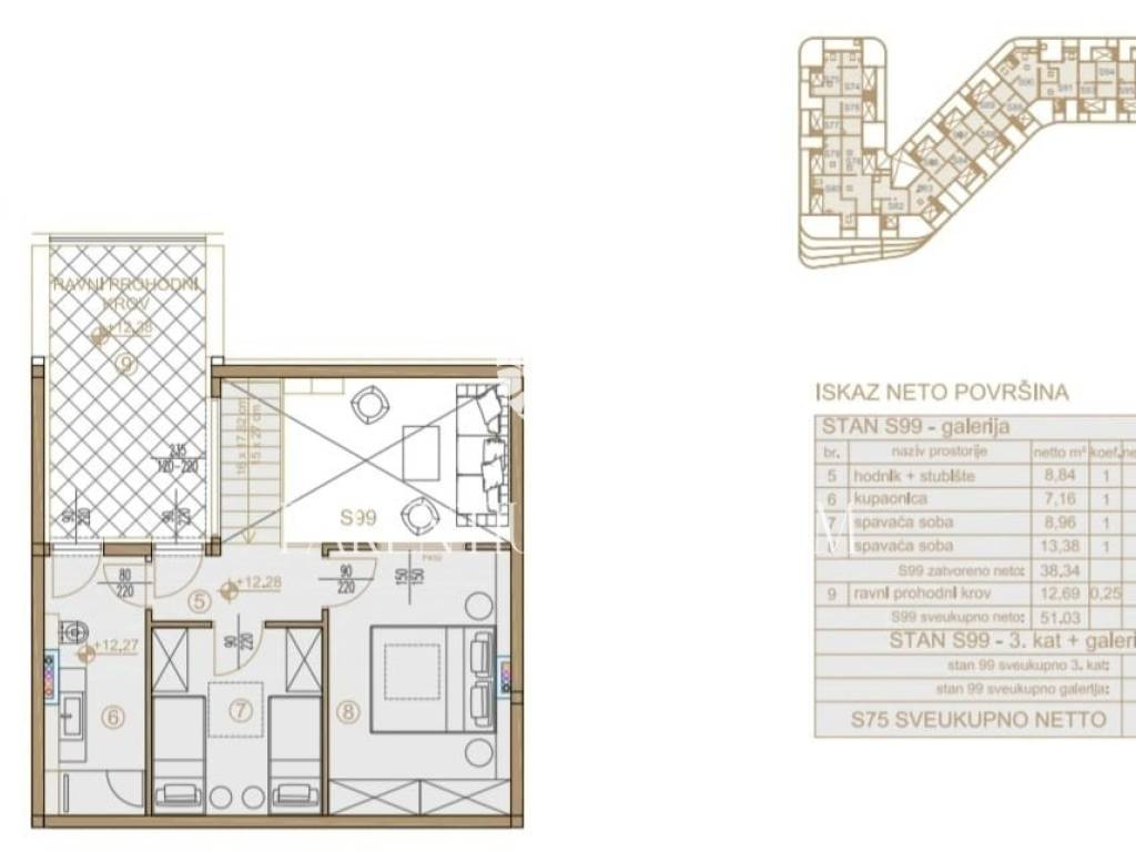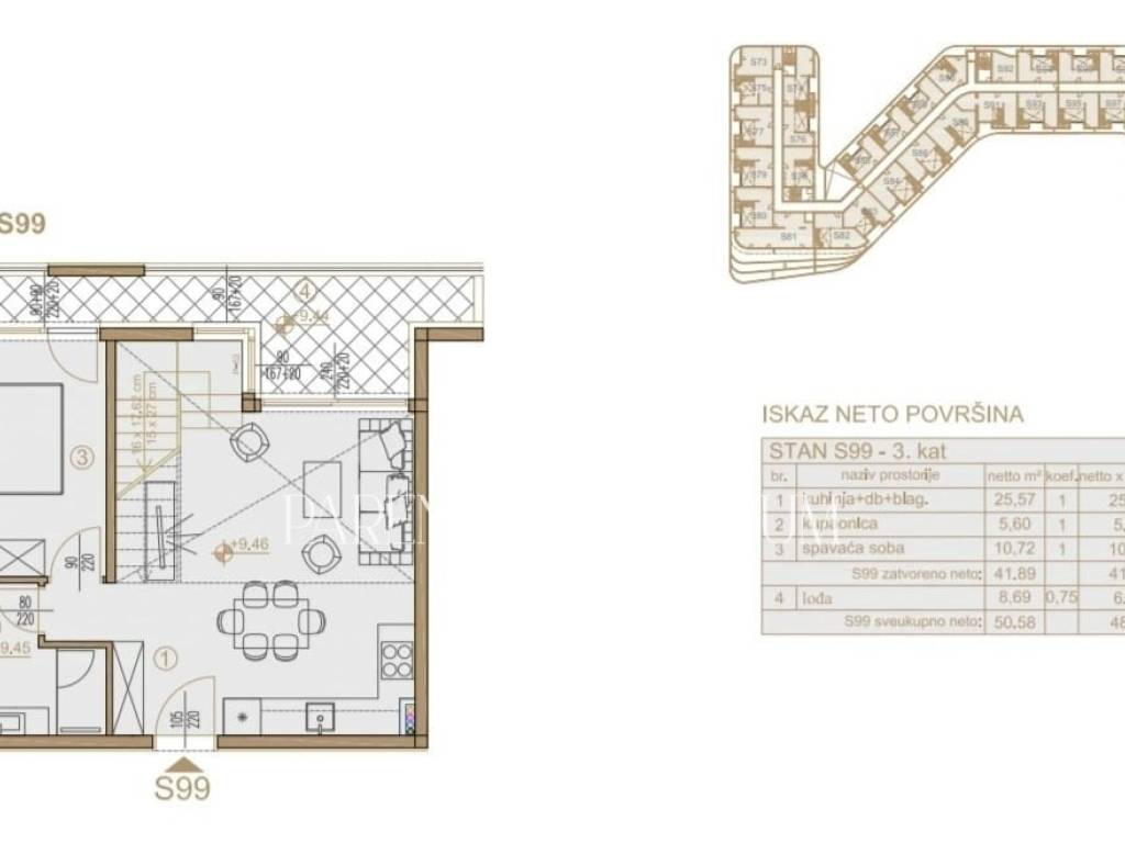 Apartman S99,ukupne površine 89,92m2,nalazi se na 3. katu u PREMIUM BLUE ZONII.
