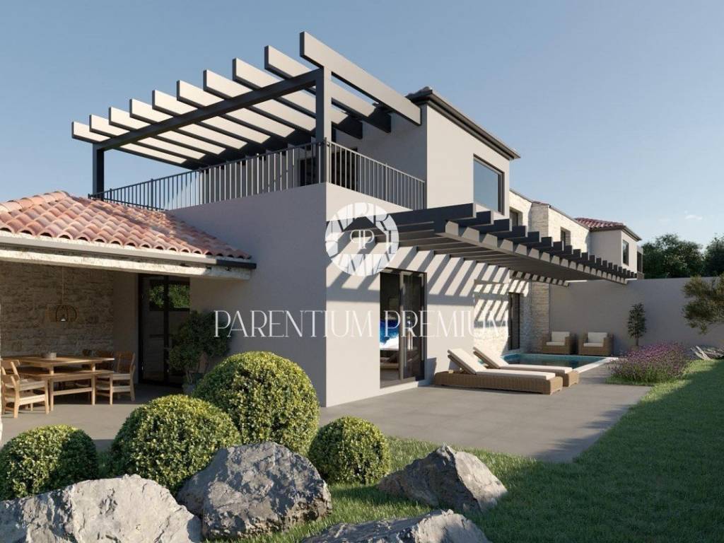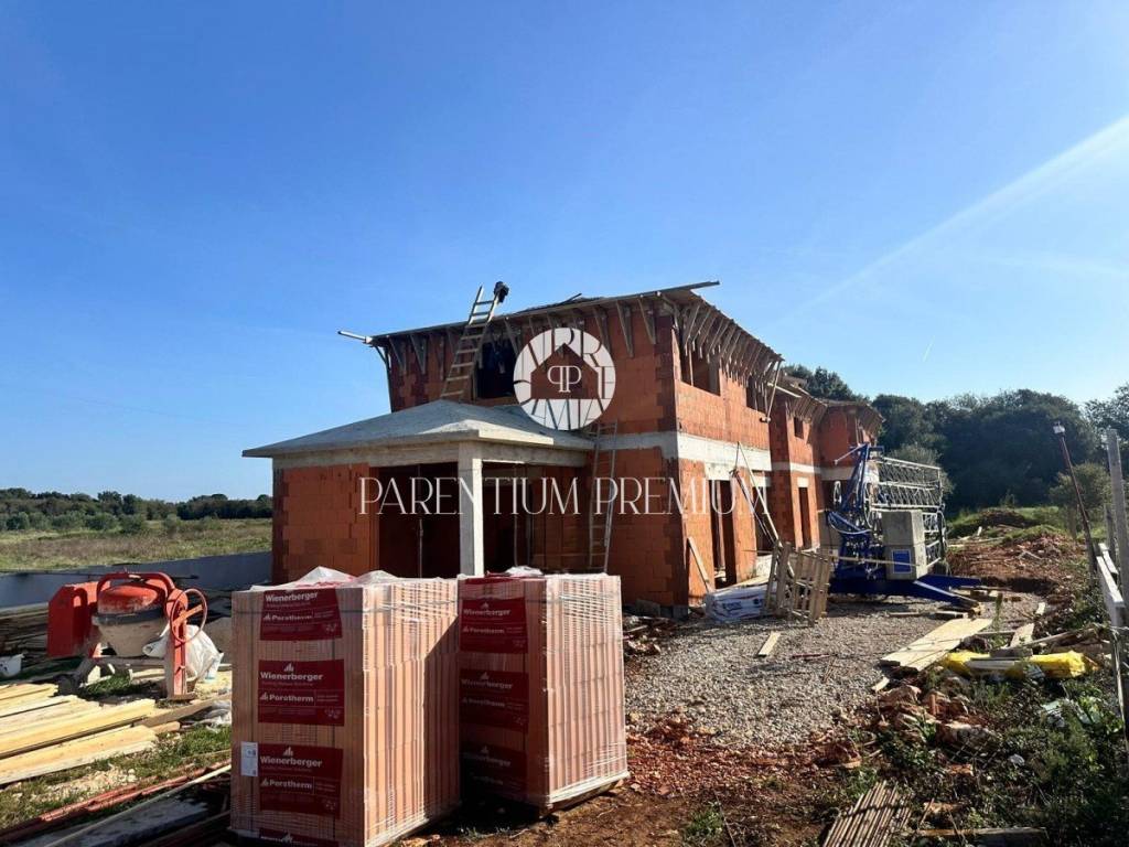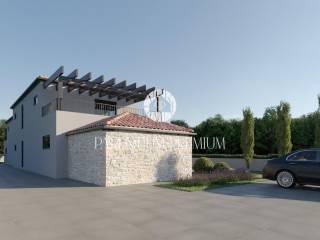 Prodaje se moderna dvojna kuća s bazenom u okolici Ližnjana. Kuća se prostire na dvije etaže stambene površine od 147.66 m2 i nalazi se na zemljištu površine 465 m2. U prizemlju se nalazi ulazni hodnik s garderobom, spremište, spavaća soba sa vlastitom kupaonicom, kuhinja s blagovaonicom i dnevnim boravkom po open space konceptu s izlazom na terasu sa sunčalištem i bazenom od 25m2. Na prvom katu se nalaze dvije spavaće sobe svaka s vlastitom kupaonicom, dok jedna svoju terasu. Grijanje i hlađenje je predviđeno putem klima uređaja s inverterom, a stolarija je visokokvalitetna troslojna. Kuća se prodaje nenamještena. U dvorištu se nalaze dva parkirna mjesta. Predviđen završetak radova je svibanj 2025. godine. Ova dvojna kuća je idealno rješenje stambenog pitanja ili kao investicija u turističke svrhe.