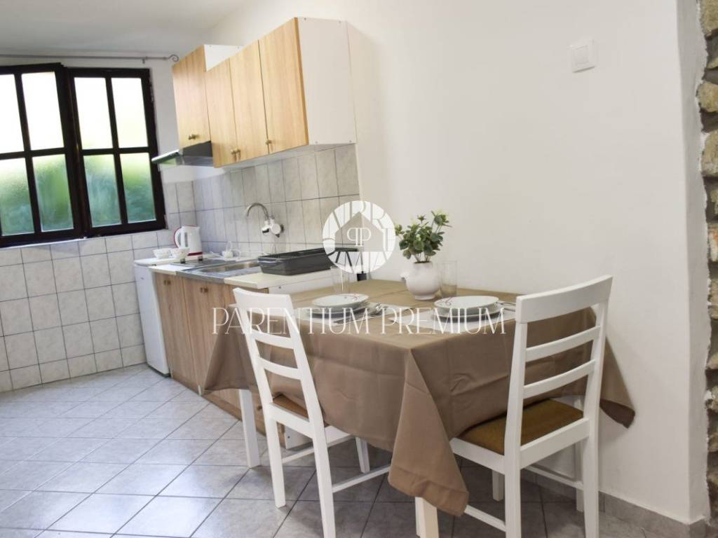 Prodaju se dva stana u prizemlju na atraktivnoj lokaciji u Poreču. Prvi stan se sastoji od dnevnog boravka, kuhinje i blagovaone, dvije spavaće sobe, kupaonice i ostave, a drugi stan je studio apartman s kuhinjom i kupaonicom. Stanove je moguće spojitida čine jednu veću stambenu jedinicu. Grijanje i hlađenje je putem klima uređaja, ali postoji i dimnjak za peć na drva ili pelete. Stanovi se prodaju potpuno namješteni. Dvorište je zajedničko od svih stanova. Svi potrebni sadržaji se nalaze na pješačkoj udaljenosti, a do mora je 500 m. Ovaj stan je idealno rješenje stambenog pitanja ili kao investicija u turističke svrhe. ID: 1948_0728