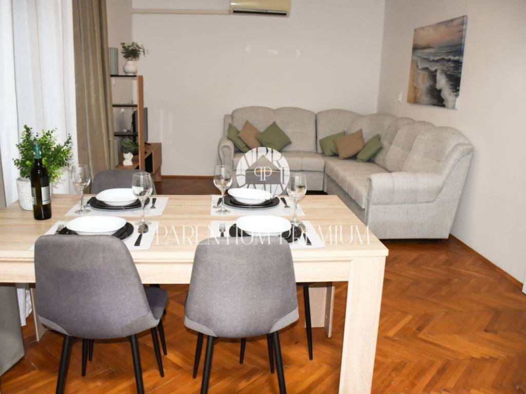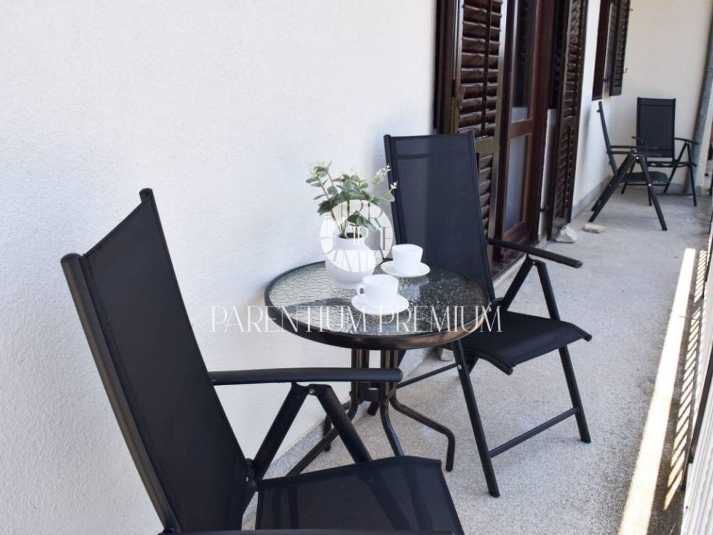 Prodaju se stan na prvom katu na atraktivnoj lokaciji u Poreču. Stan se sastoji od ulaznog hodnika, dnevnog boravka sa izlazom na natkrivenu terasu, kuhinje i blagovaone, dvije spavaće sobe i kupaonice. Grijanje i hlađenje je putem klima uređaja, ali postoji i dimnjak za peć na drva ili pelete. Stanu pripada jedno parkirno mjesto te se prodaje potpuno namješten. Svi potrebni sadržaji se nalaze na pješačkoj udaljenosti, a do mora je 500 m. Ovaj stan je idealno rješenje stambenog pitanja ili kao investicija u turističke svrhe. ID: 1949_0728