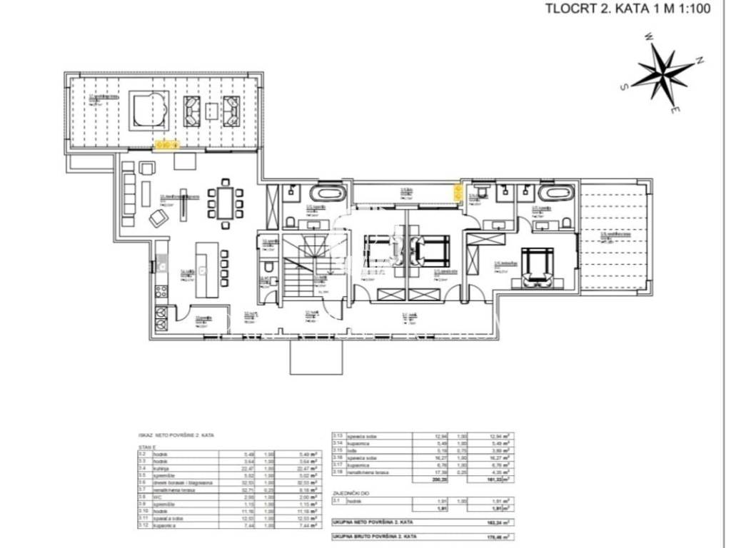U mirnom naselju, nadomak mora i grada Poreča prodaje se ovaj komforni penthouse sa panoramskim pogledom na more i grad Poreč ukupne površine od 161,33m2.