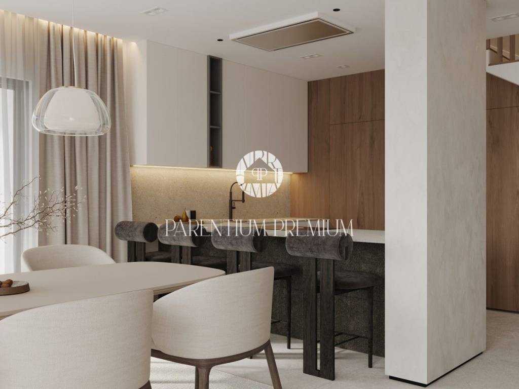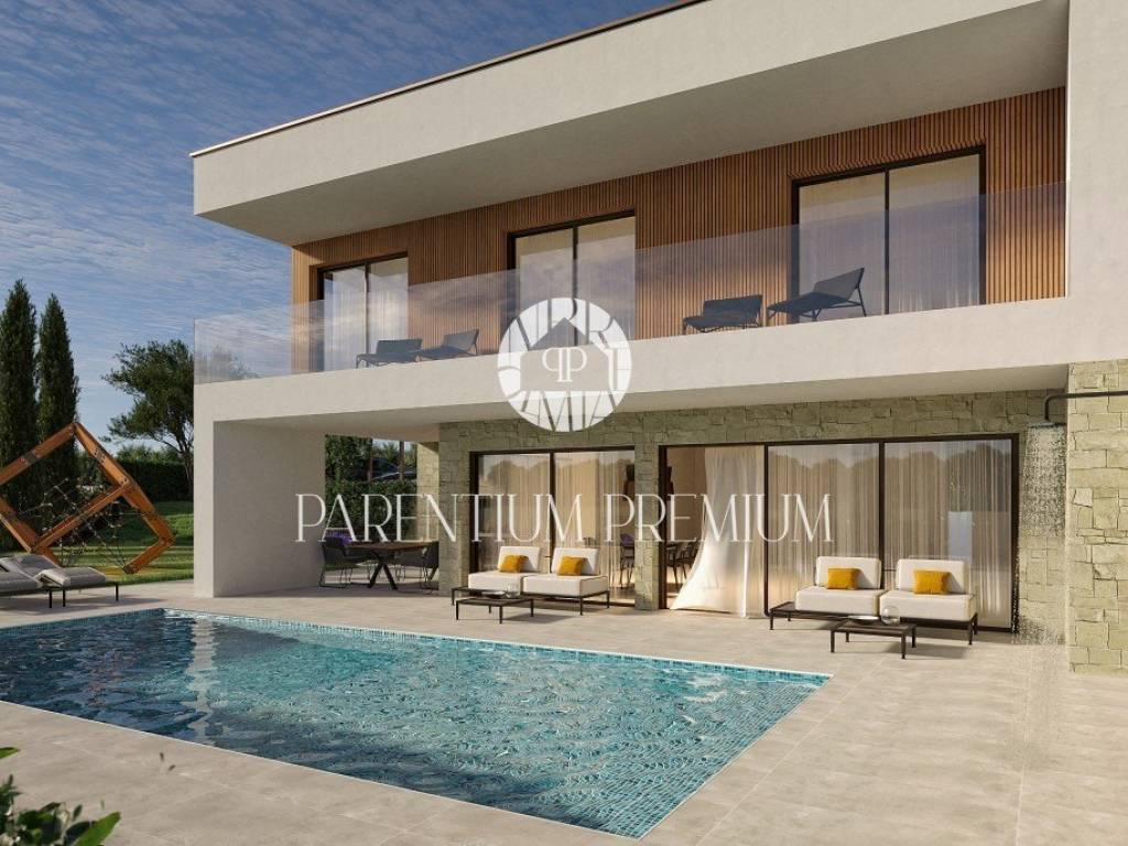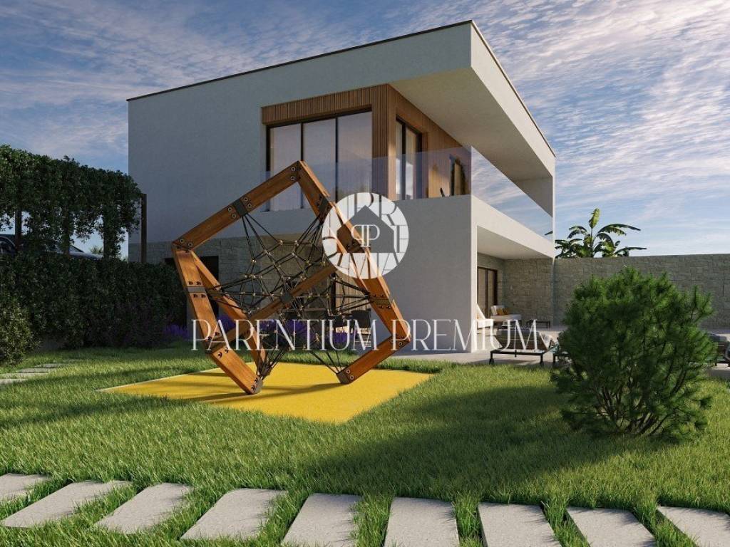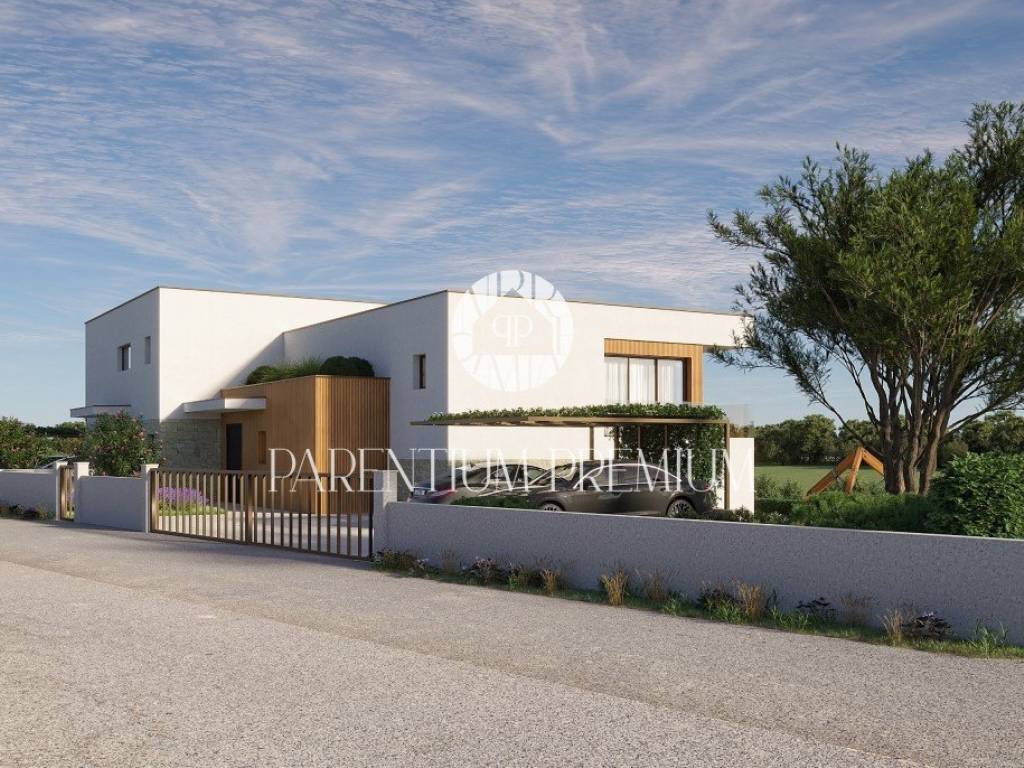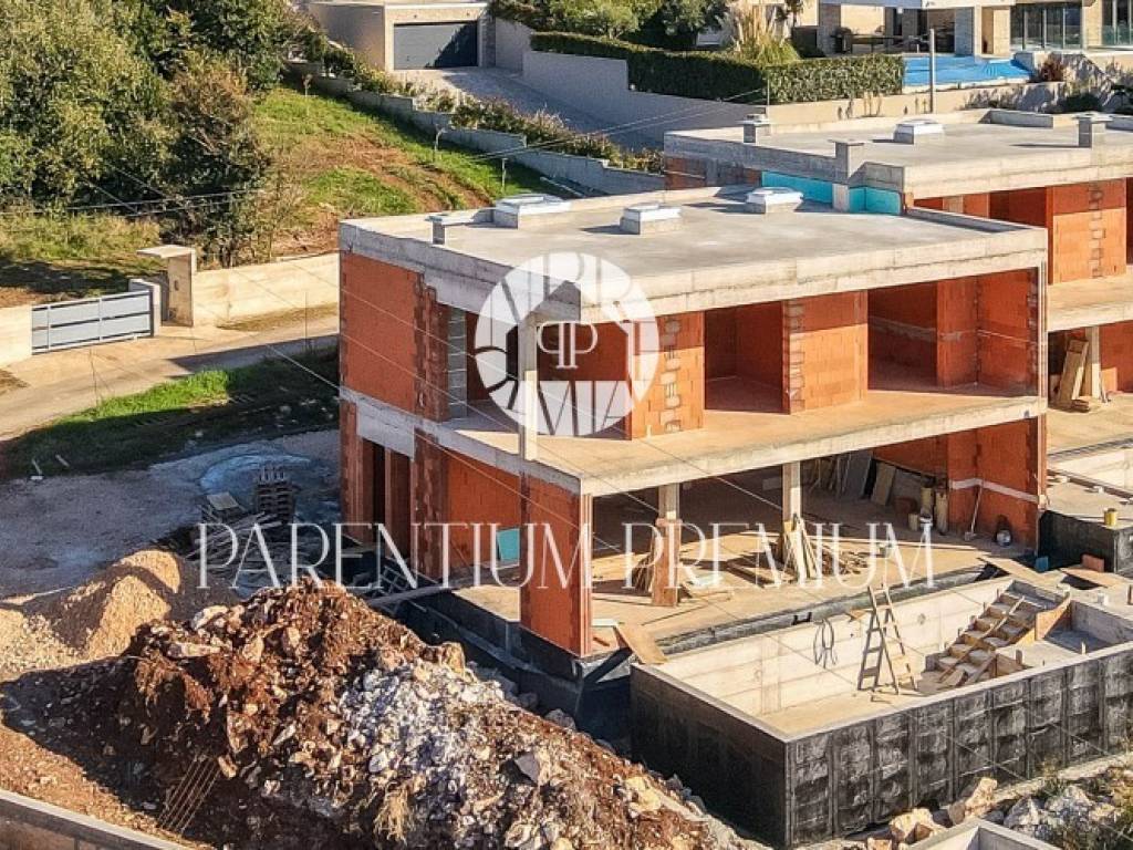 Na lijepoj i traženoj lokaciji smjestila se ova moderna te iznimno kvalitetna dvojna kuća sa grijanim bazenom i pogledom na more ukupne površine od 183,21m2.