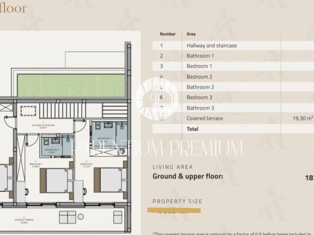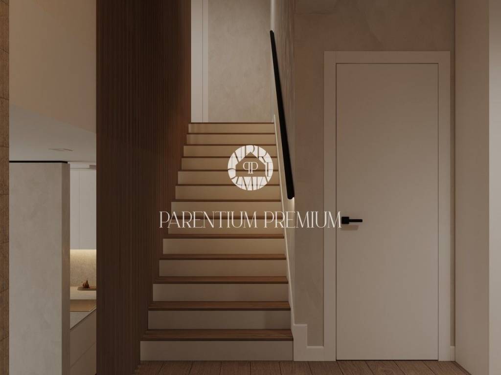 Kuća je podijeljena na 2 etaže. Prizemlje se sastoji od otvorenog dnevnog boravka, kuhinje i blagovaone sa velikim staklenim stijenama koji su povezani sa prostranom i natkrivenom terasom, grijanim bazenom i sunčalištem oko njega. Na ovoj etaži se nalazi još gostinjski toalet, tehnička soba, kotlovnica i vanjski WC. Na katu se nalaze 3 spavaće sobe sa vlastitim kupaonicama te izlazima na terasu sa koje se proteže nesmetani i umirujući pogled na prekrasne zalaske sunca i more.