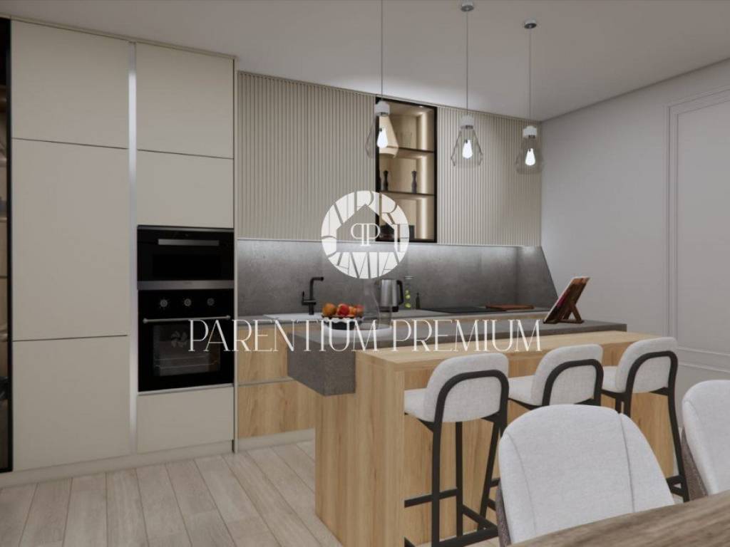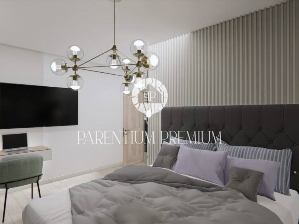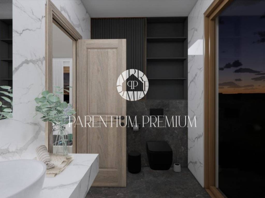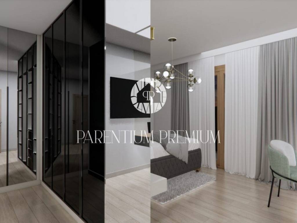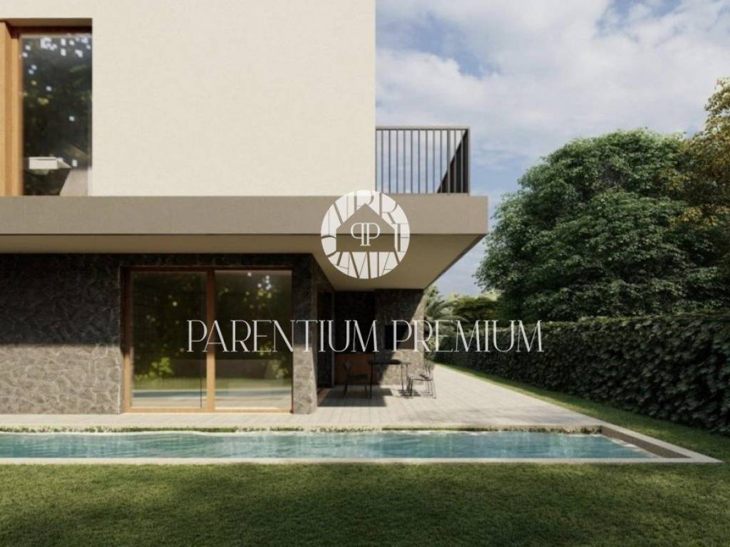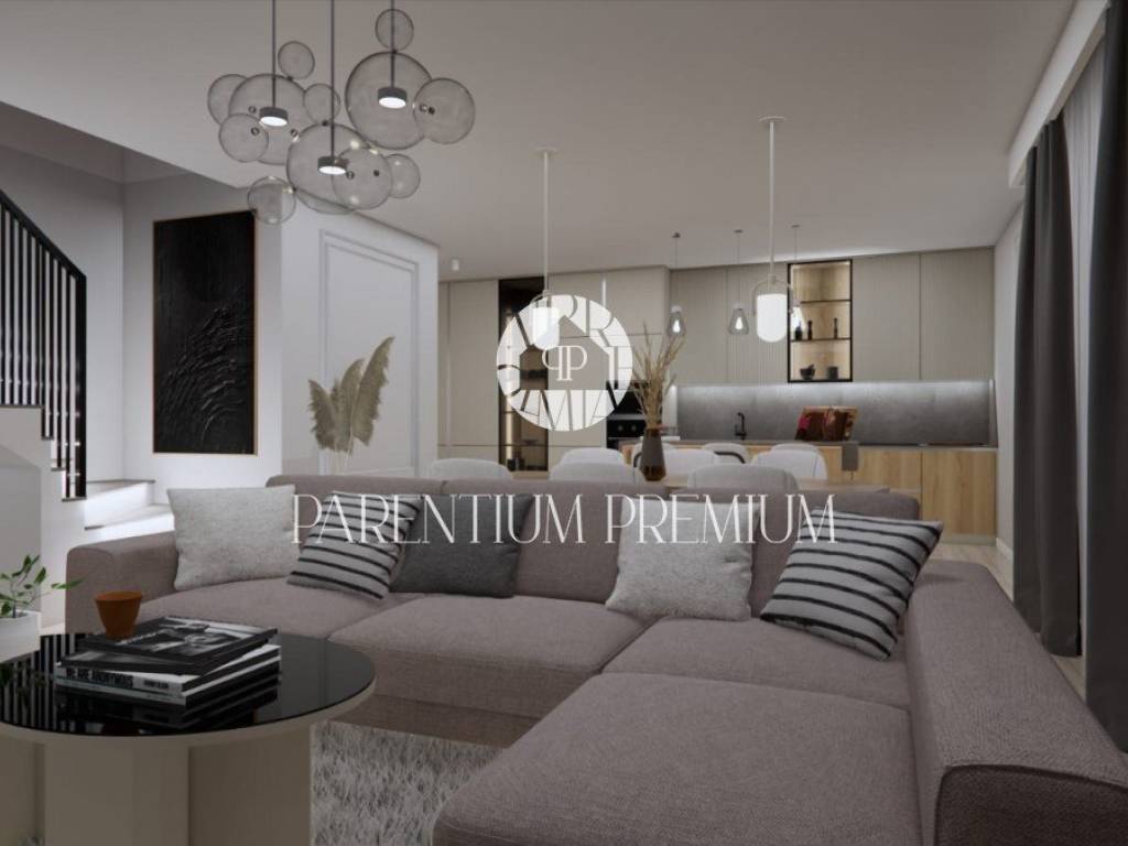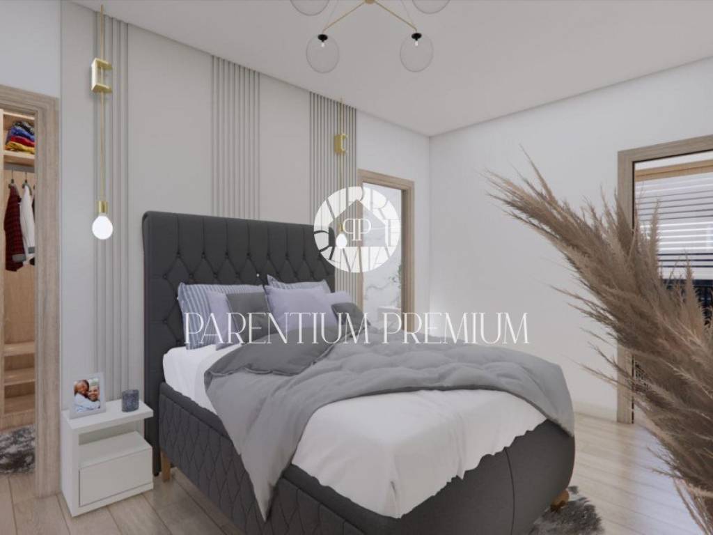 Izrazito funkcionalna i lijepoga dizajna kuća se proteže na 2 etaže. U prizemlju se nalazi prostrani te osvijetljeni open space dnevni boravak sa kuhinjom i blagovaonom povezan sa natkrivenom terasom gdje se nalazi ljetna kuhinja i elegantni bazen. Na ovoj etaži imamo toalet za goste i strojarnicu/spremište sa vanjske strane. Unutarnjim stubištem penjemo se na kat gdje su smještene 2 komforne spavaće sobe sa vlastitim kupaonicama i garderobama te zajedničkom terasom.