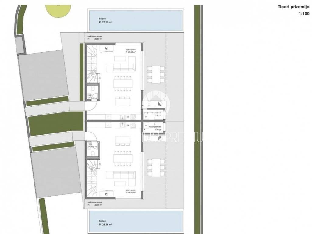 Na mirnoj autohtonoj istarskoj lokaciji smjestila se ova moderna dvojna kuća sa bazenom jedinstvenog dizajna ukupne površine od 122,36m2.