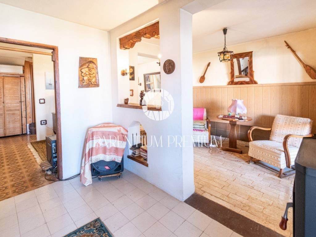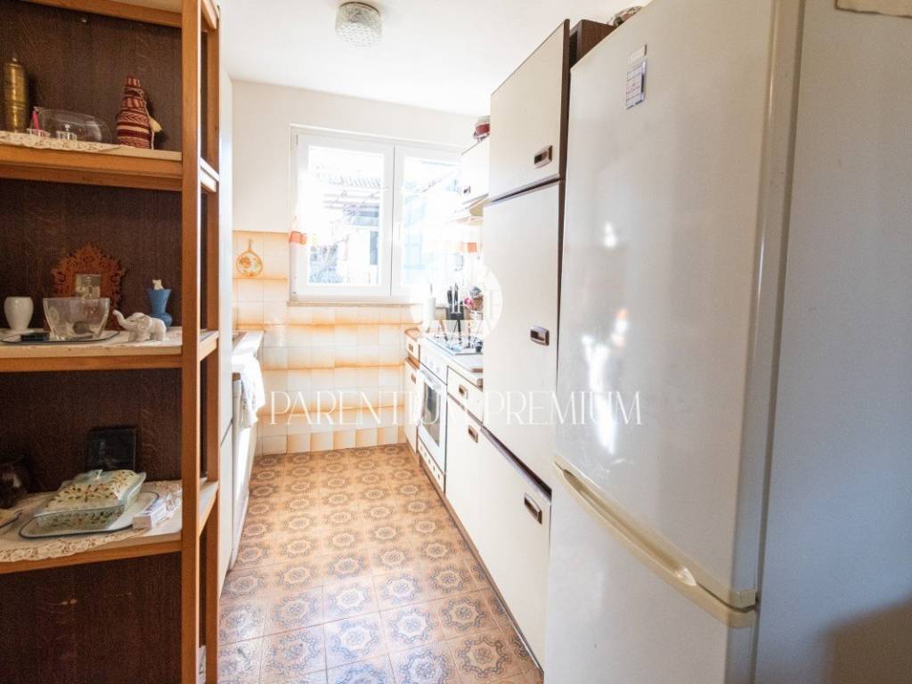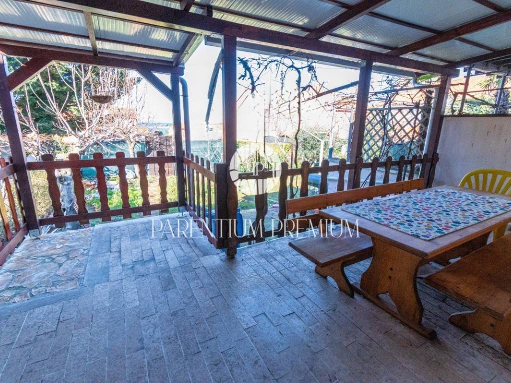 Prodaje se kuća u nizu 200m od mora i prekrasne plaže. Kuća se prostire na dvije etaže. U prizemlji se nalazi ulazni hodnik, kupatilo, kuhinja s blagovaonicom, dnevni boravak s izlazom na natkrivenu terasu s pogledom na vrt i more. Na prvom katu se nalaze tri spavaće sobe, kupaona, i dvije terase od kojih jedna ima prekrasan pogled na obalu i more. Ispod terase se nalazi podrum/ostava. Grijanje je putem peći na drva, te klima uređaj. Parkirno mjesto se nalazi ispred kuće. Ova kuća je zbog svoje lokacije idealno rješenje stambenog pitanja ili kao investicija u turističke svrhe.