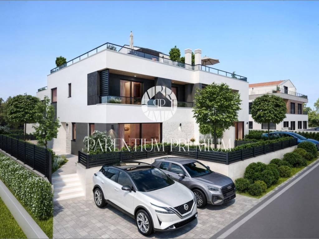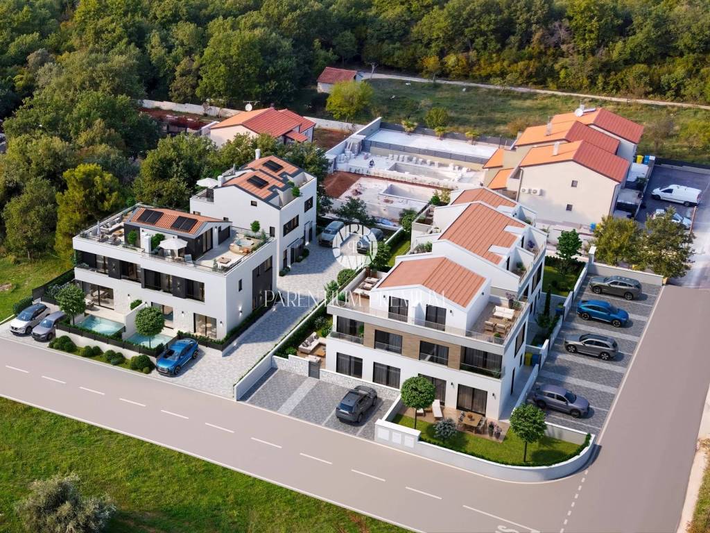 Prodaje se moderna prostrana dvojna kuća sa bazenom na traženoj lokaciji u Poreču nadomak svih sadržaja potrebnih za život.