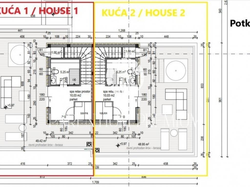 U potkrovlju se nalazi SPA relax prostor za saunu, kupaonica te velika terasa sa priključkom za Jacuzzi.
