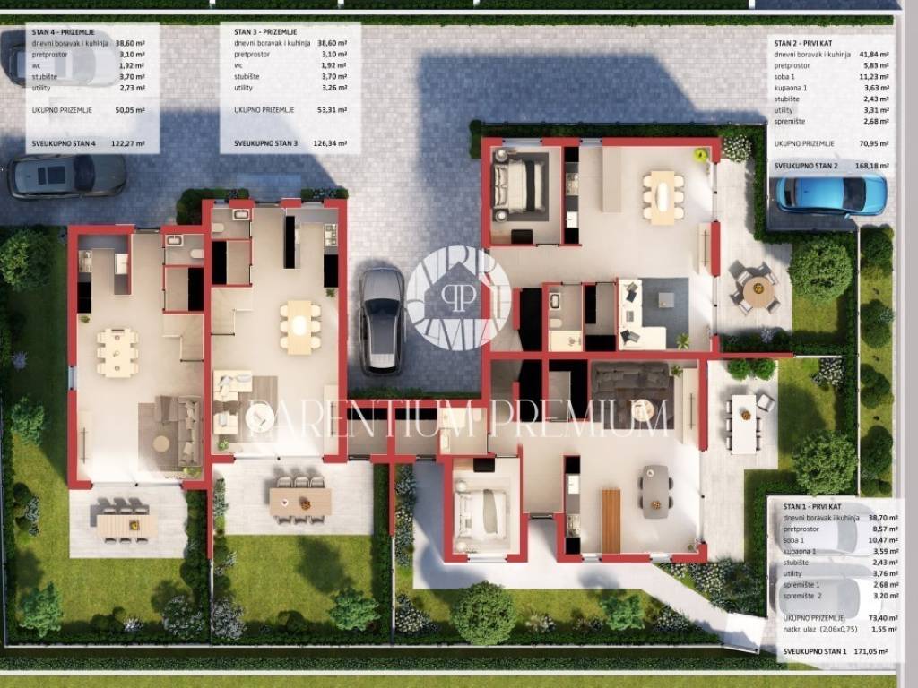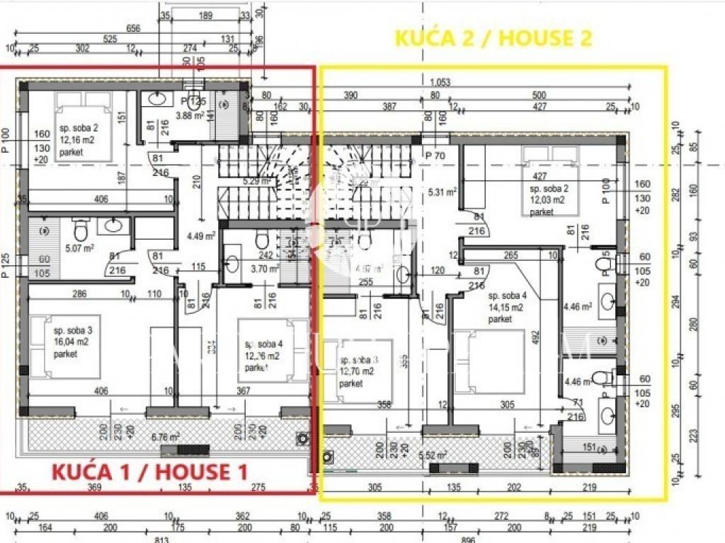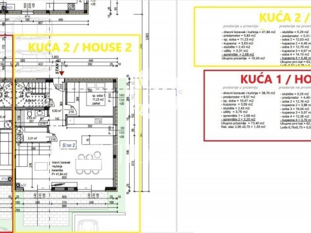 Kuća broj 2 je ukupne površine 171 m2 i proteže se na tri etaže.