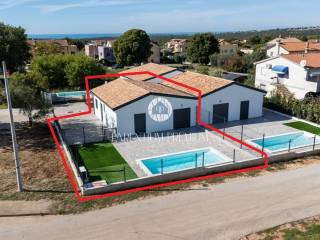 Na prodaju je nova moderna prizemnica stambene površine 115 m, smještena u mirnom dijelu okolice Poreča. Neto stambena površina kuće iznosi 75 m, dok terasa ima oko 30 m.