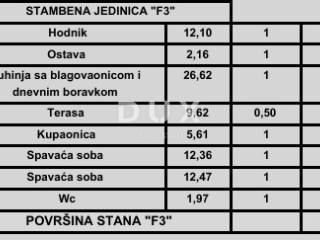 Predmetni stan je stan F3 na trećem katu zgrade koji nudi stambenu površinu od 78,10 m2 te parkirno mjesto uz nadoplatu ovisi koji tip parkinga odaberete.