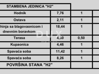 Predmetni stan je stan H2 na drugom katu zgrade koji nudi stambenu površinu od 54,60m2 te parkirno mjesto uz nadoplatu ovisi koji tip parkinga odaberete.