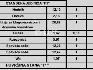 Predmetni stan je stan F1 na prvom katu zgrade koji nudi stambenu površinu od 78,10m2 te parkirno mjesto uz nadoplatu ovisi koji tip parkinga odaberete.