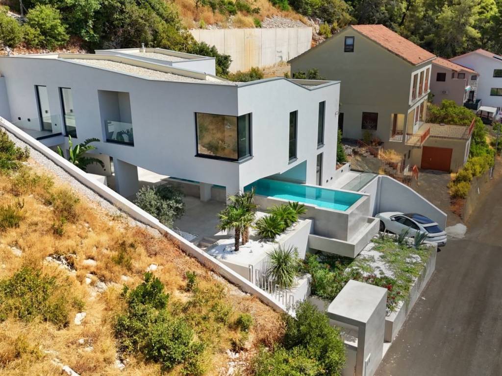 Prodaje se prekrasna moderna vila na južnoj strani otoka Korčule u mjestu Brna udaljena 80 m od mora. Vila je dizajnirana od strane nagrađivanog arhitekta i kandidat je za international architecture awards 2025. Vila se sastoji od: 250 m² suvremenog unutarnjeg prostora 120 m² prekrasnih terasa Četiri luksuzne spavaće sobe, svaka sa svojom kupaonicom Tri apartmana izlaze na privatne terase s pogledom na more ili vrt Velika južna terasa za opuštanje i blagovanje na otvorenom Infinity bazen od 38 m² s vrhunskom filtracijom, unaprijed pripremljen za buduće grijanje Središnji prostor otvorenog tipa, predviđen za ekskluzivnu kuhinju po mjeri, otočni bar i panoramski dnevni boravak Dva dizajnerska stubišta povezuju obje etaže i služe kao skulpturalni detalji Glavne značajke: Potpuno klimatiziran prostor i podno grijanje, oboje daljinski upravljivi putem mobilnog telefona Vrhunska vanjska stolarija (kombinacija drva i aluminija) Svi podovi (unutarnji i vanjski) obloženi su crnim talijanskim pločicama 75x150 cm, istim materijalom obložen je i bazen Magnetski rasvjetni sustav u svim interijerima Luksuzne kupaonice s tuševima od 40 cm i vrhunskom sanitarijom Vanjski tuš za osvježenje nakon plivanja Uređeni mediteranski vrtovi s automatskim navodnjavanjem 2 parkirna mjesta (s mogućnošću ugradnje kapije) Stanica za punjenje električnih vozila Prizemlje i kat povezani su dvama dizajnerskim stubištima Vila se isporučuje nenamještena, uz mogućnost da interijer uredite prema vlastitom ukusu. Naš tim može osigurati kompletnu realizaciju projekta po principu „ključ u ruke“ - od ideje do završne instalacije - za potpuno bezbrižno useljenje. Link za prezentaciju: https://www.flipsnack.com/58C7887A9F7/platinum_villa_dossier-rev-2/full-view.html
