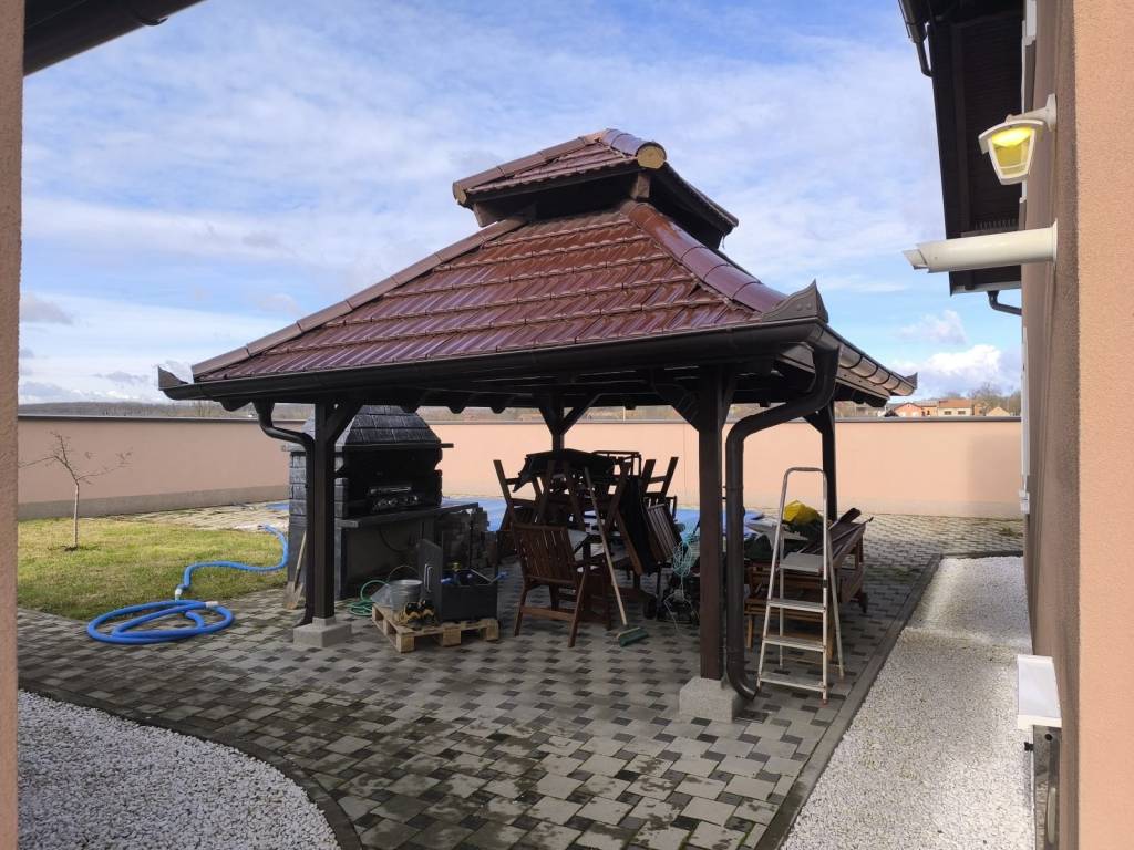 Prodaje se lijepa visoka prizemnica potpuno adaptirana u Novom topolju. Kuća se sastoji od kuhinje, blagovaonice, dnevnog boravka, kupaonice i spavaće sobe u prizemlju te četiri sobe u potkrovlju. Kuća ima sve priključke, video nadzor, grijanje je plinsko etažno, nalazi se na zemljištu od 4316 m2. U dvorištu i veliki ukopani bazen. Uz kuću se prodaje i 20202 m2 poljoprivrednog zemljišta obradivog uz asfaltnu cestu. Postoji mogućnost kupnje posebno poljoprivrednog zemljišta ili kuće. Cijena je za kompletno sve.