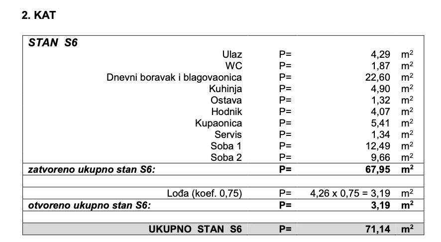 POVOLJNO!!! Prodaje se stan u novogradnji na naselju Budainka. Stan je trosobni površine 71 m2, a sastoji se od predsoblja, dnevnog boravka i blagovaonice, kuhinje, ostave, hodnika, kupaonice, wc-a, servisa, dvije spavaće sobe i lođe. Uz stan ide i parkirno mjesto koje je u cijeni. Stan S6.
