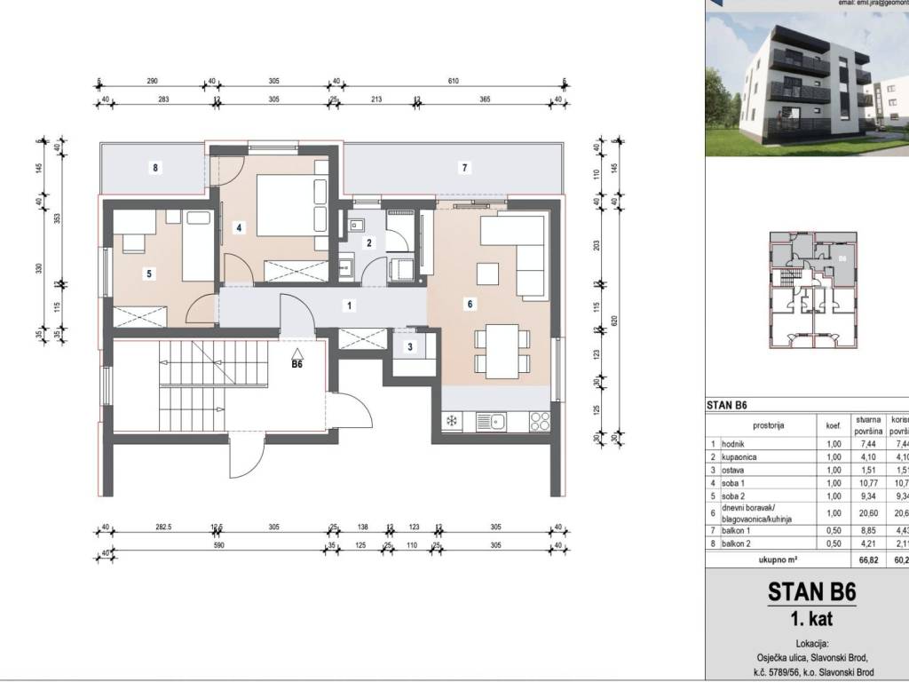 NOVOGRADNJA!!! Prodaje se trosobni stan u izgradnji u Osječkoj ulici. Stan je u prizemlju i sastoji se od dvije spavaće sobe, dnevnog boravka kuhinje i blagovaonice u jednom prostoru, kupaonice, hodnika, ostave i balkona. Uz stan ide i parkirno mjesto. Sve režije su odvojene. Planirano je kraja 8. mjeseca raditi završne radove na ličenju zidova i odrađivanju radova uređivanja okoliša. Očekuje se bi stanari mogli ulaziti več od 9 mjeseca,