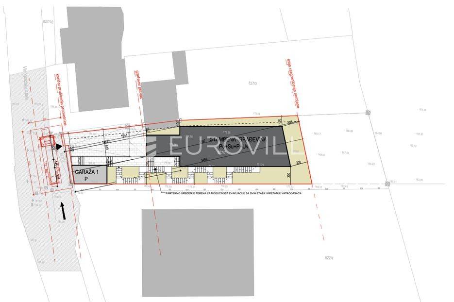 Zagreb - Vinogradska cesta, građevinsko zemljište 587 m2 s idejnim projektom i lokacijskom dozvolom u ishođenju.Ukupna površina zemljišta je 587 m2, građevinski dio zemljišta 431 m2, zelena površina 151 m2 na istočnoj strani.Koeficijent izgrađenosti: 0,39Koeficijent iskoristivosti: 1,0Građevinska bruto površina: 430,88 m2Planirana katnost: Po + S + P + UkIdejni projekt za izgradnju stambene zgrade sa 3 stambene jedinice. Ulaz u stambenu zgradu zbog konfiguracije terena nalazi se na najvišoj etaži – uvučenom katu te se unutarnjim stubištem pristupa u sve etaže.Planirana stambena zgrada sastoji se od:- tri nadzemne etaže: Na uvučenom katu nalazi se stan S1 (84,87 m2), u prizemlju se nalazi stambena jedinica S2 (107,24 m2), a u suterenu i podrumskoj etaži nalazi se dvetažna jedinica S3 (220,03 m2).- pomoćne građevine (garaže): 18,74 mParcela je po parametrima maksimalno iskorištena, geometrijski i matematički, što omogućuje investitoru najveću iskoristivost površine.Sve dodatne informacije i dokumentacija dostupni su na upit.... Više na eurovilla.hr, ID: 821015